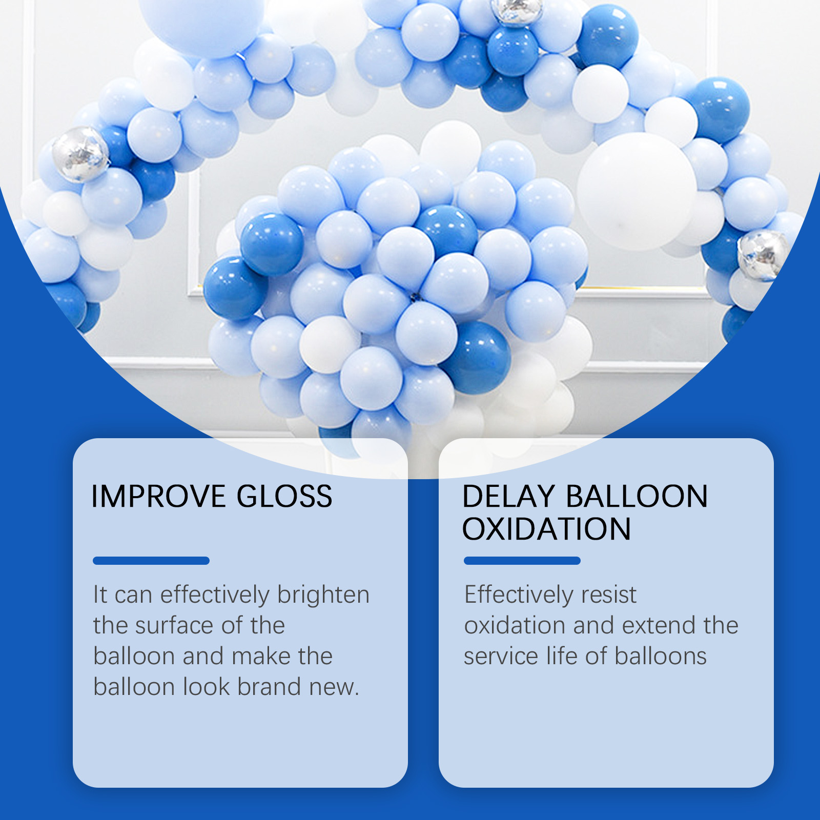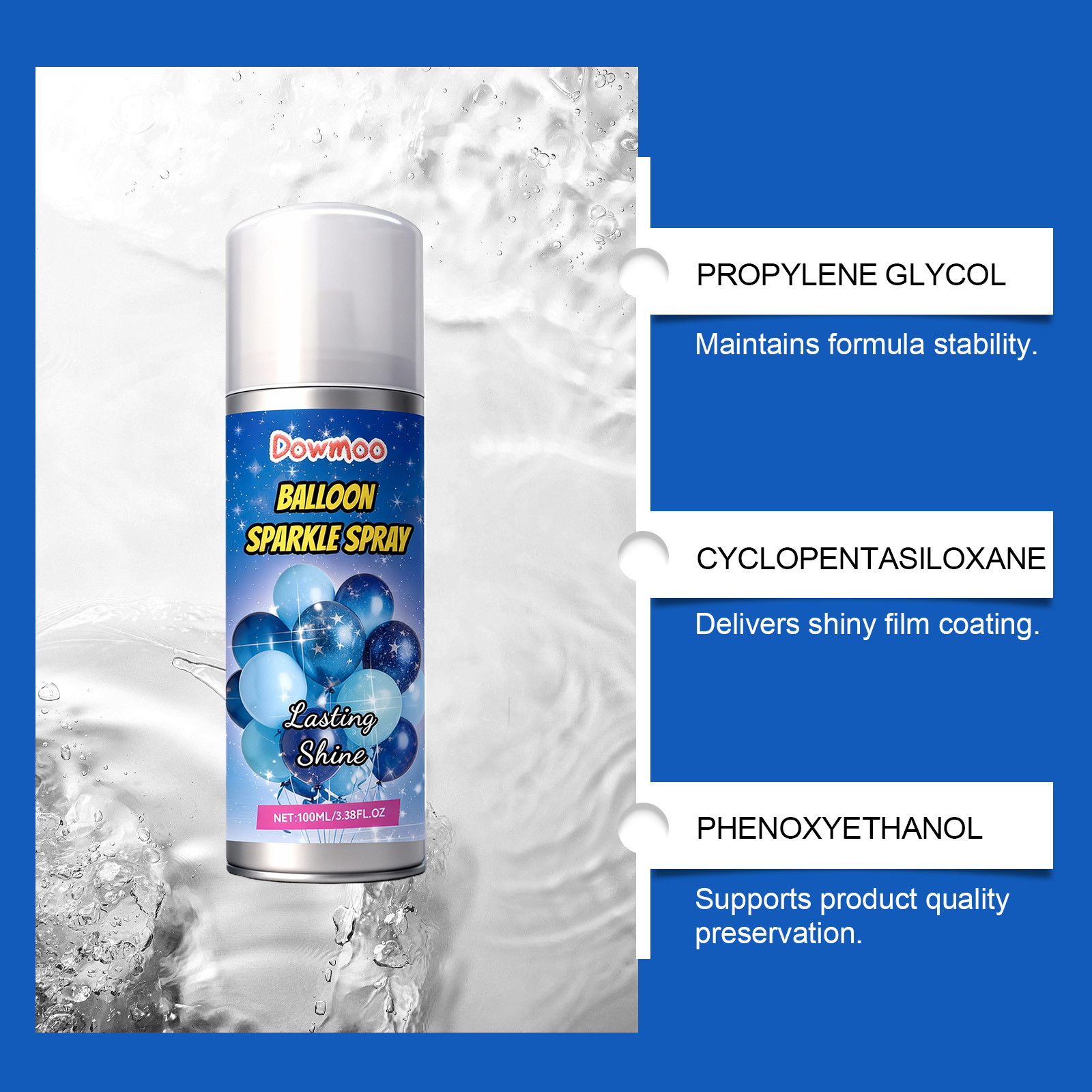 我们的气球光亮喷雾,由丙二醇、二甲醚精心调配而成。专为有效提亮气球表面,使气球看起来焕然一新,有效抵抗氧化并延长气球的使用寿命设计。使用方法极为便捷:使用前请充分摇匀,并将适量本产品喷洒在气球表面。自然风干。在通风良好的地方使用,远离火源。避免阳光直射,切勿刺穿空罐。若溅入眼睛,立即用清水冲洗并寻求医疗帮助。若不慎吞咽,请立即催吐并及时就医。并且它易于使用,喷洒方便且干燥迅速。不留痕迹,可轻松移除,不影响气球的原始颜色。