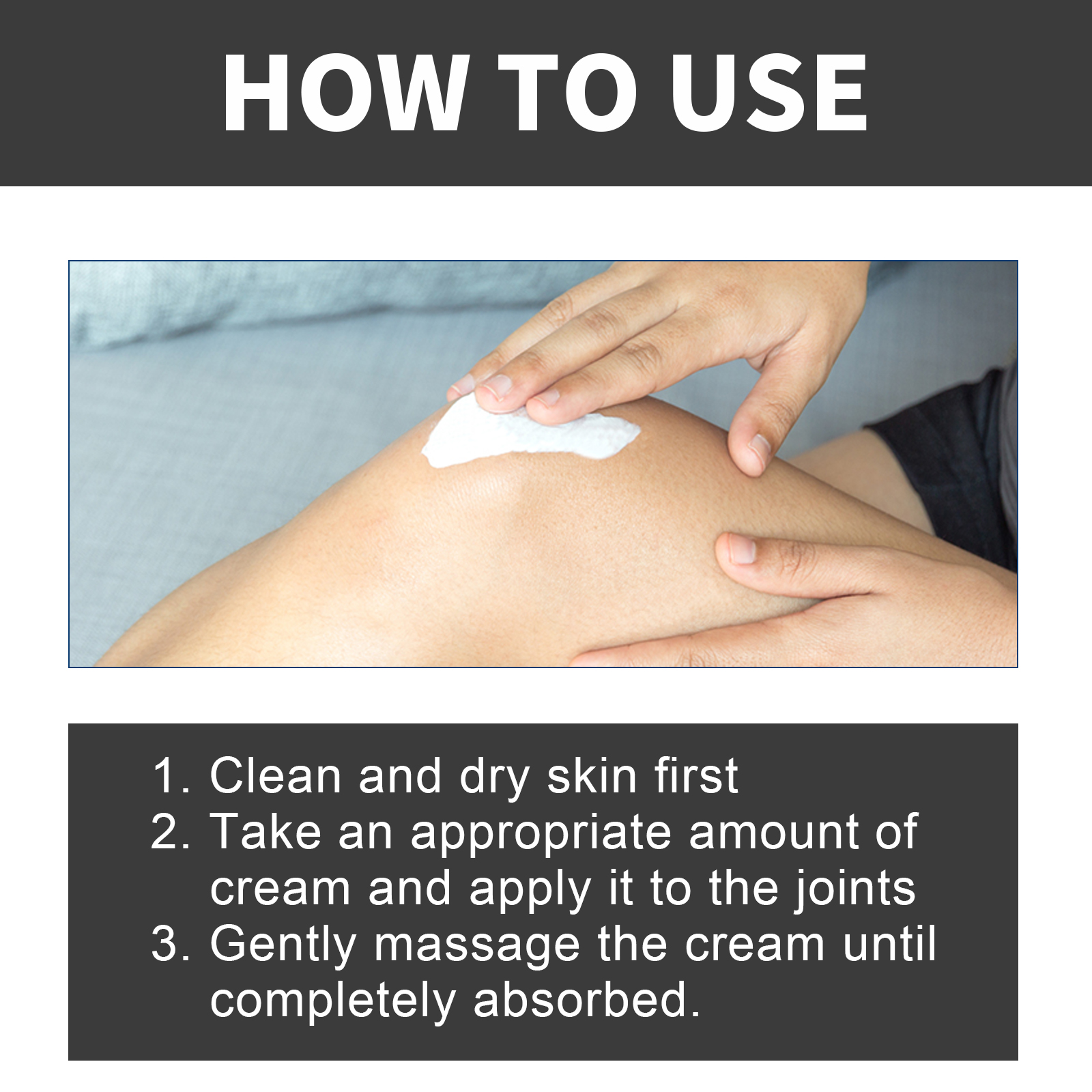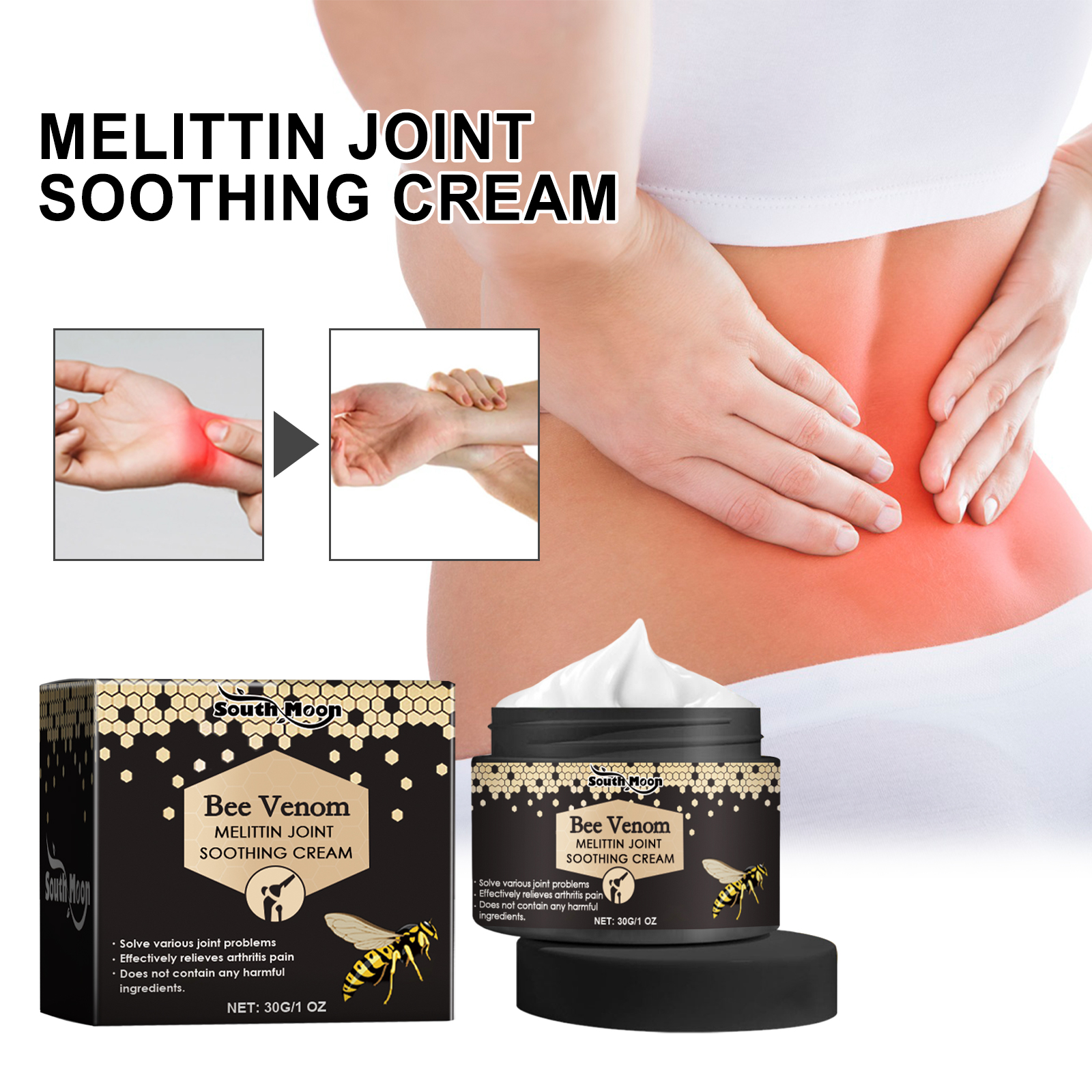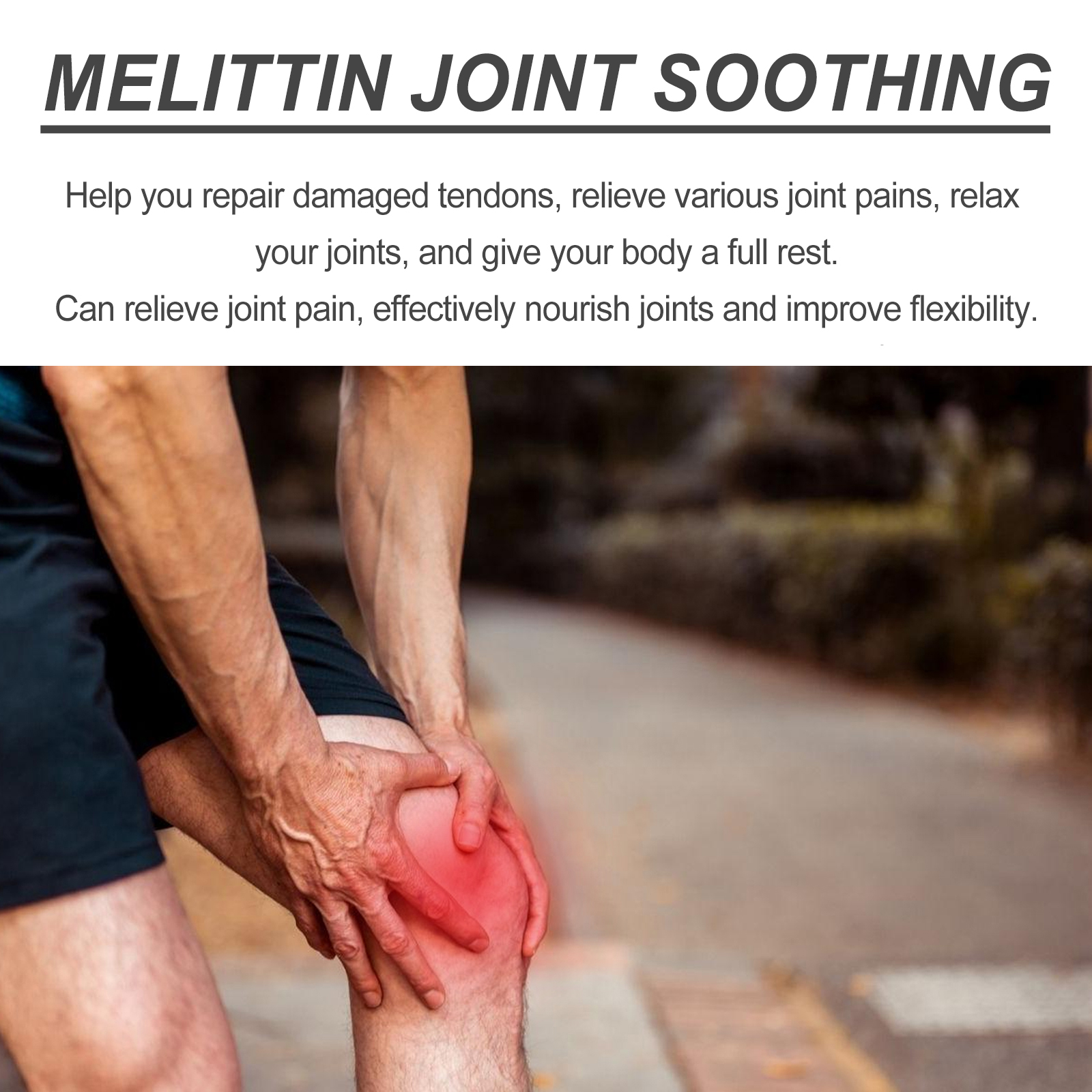 我们的关节修复膏含有姜黄素,蜂毒,山金车花提取物。它可以帮助您修复受损的肌腱,缓解各种关节疼痛,放松关节,让身体得到充分的休息,可缓解关节疼痛,有效滋养关节,提高灵活性。它的使用方法很简单:先清洁并擦干肌肤,取适量本品涂于关节处,轻轻按摩直至完全吸收即可。可以深入到关节组织,保护您的关节健康。