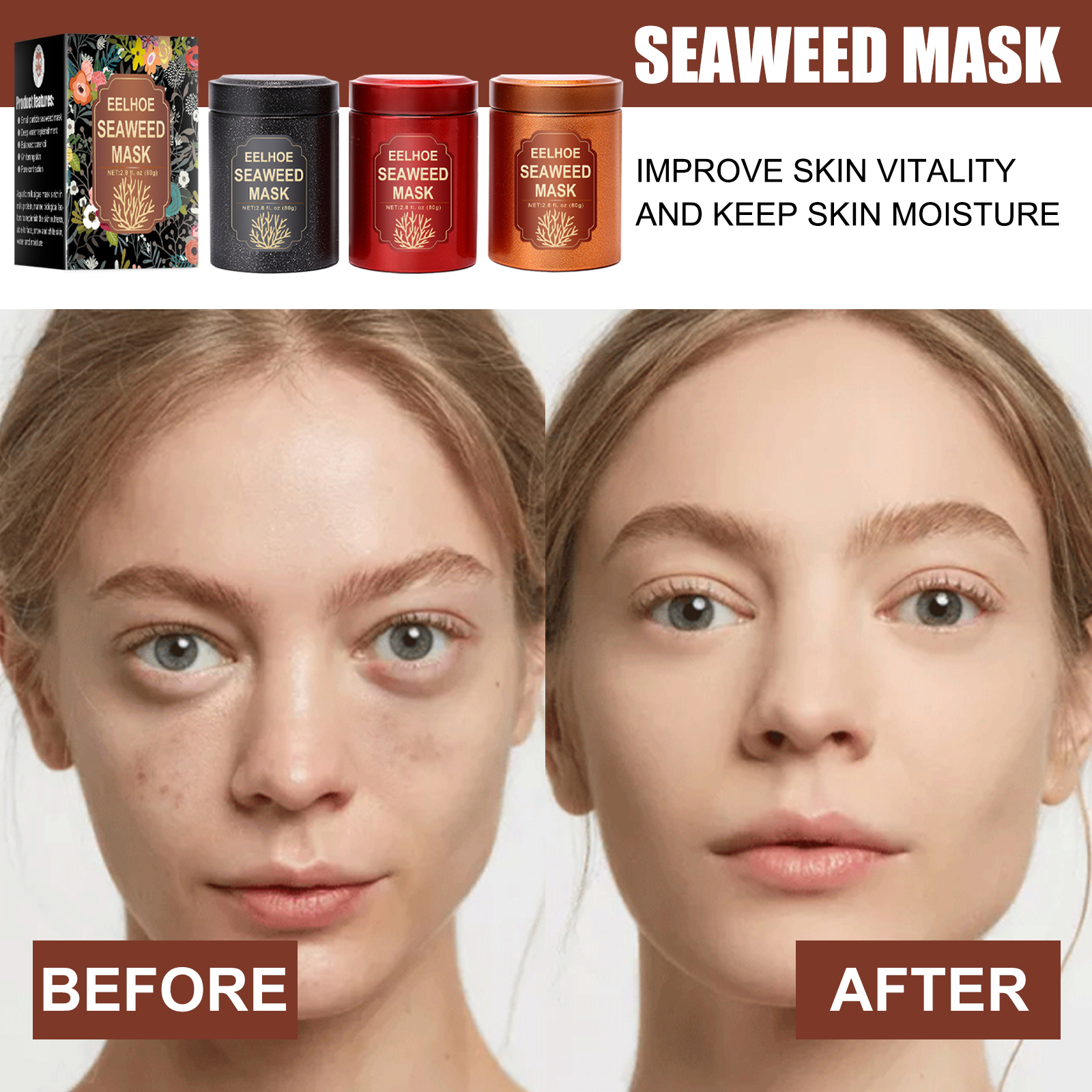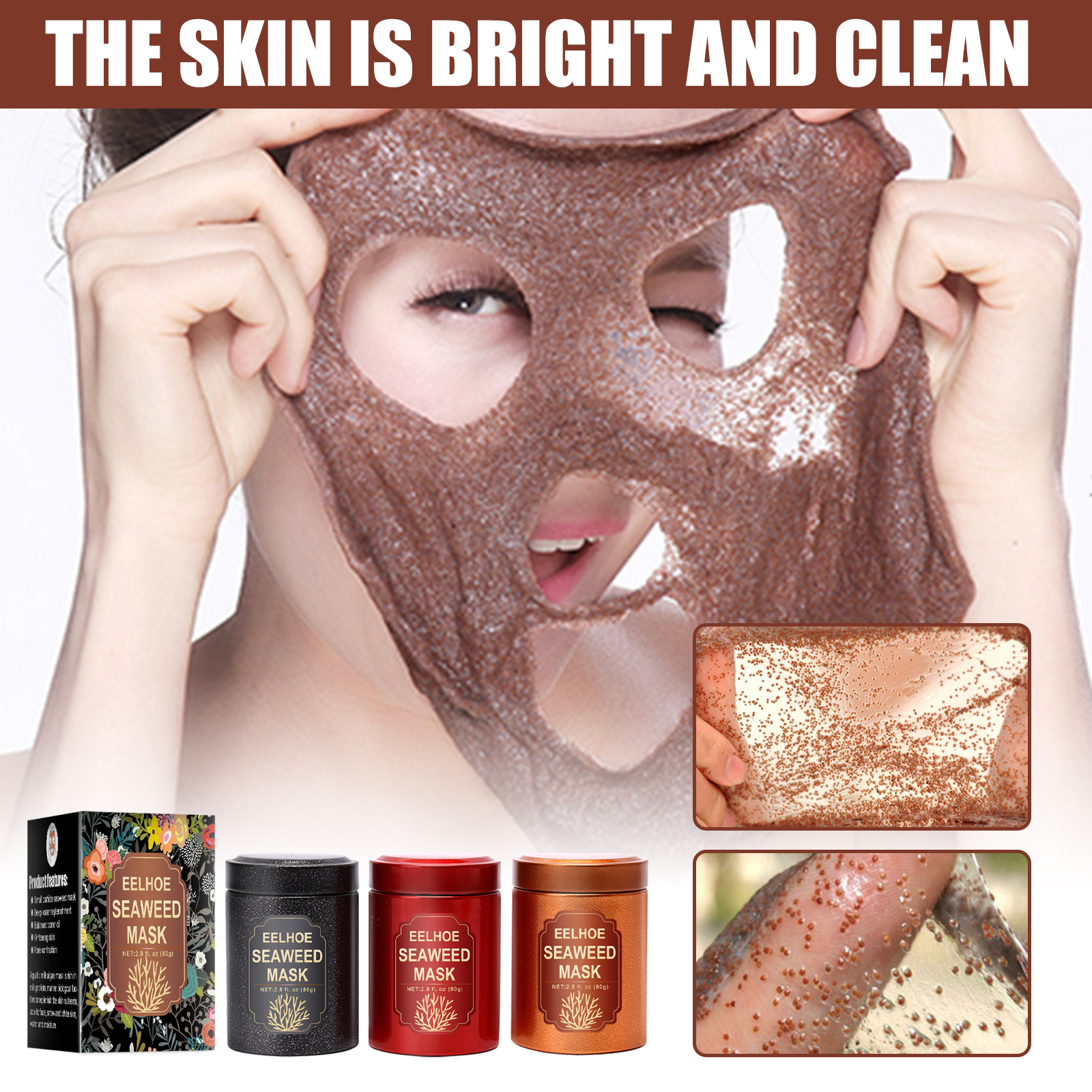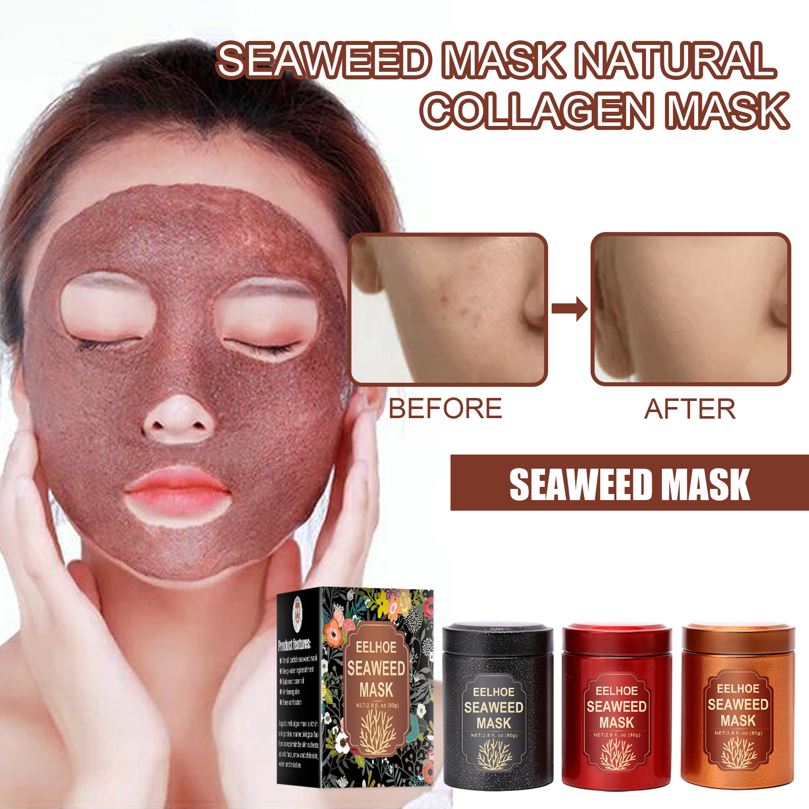 我们的海藻面膜含有海藻、可溶性胶原蛋白、乳香提取物。它可以补充肌肤营养,使脸部肌肤白皙、水润。它的使用方法很简单:洁面后,取适量本品放入容器中,注入适量清水,搅拌成糊状,均匀涂抹于面部肌肤,等待20-30分钟,用清水洗净即可。深层补水,平衡水油,美白肌肤,收缩毛孔。