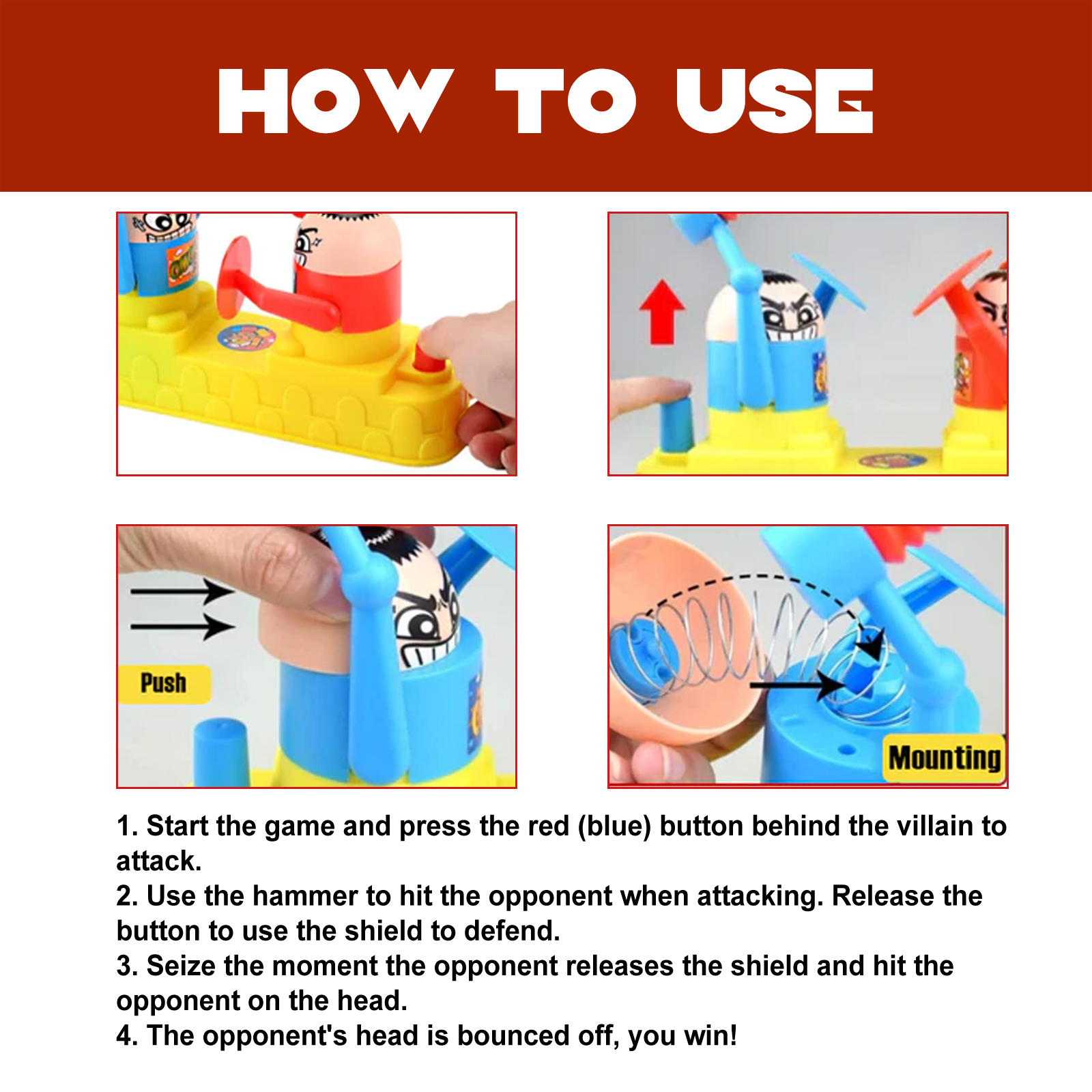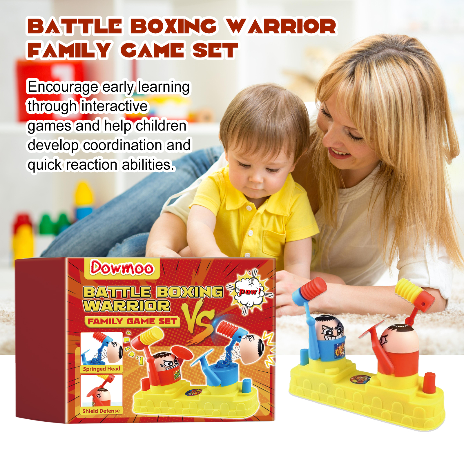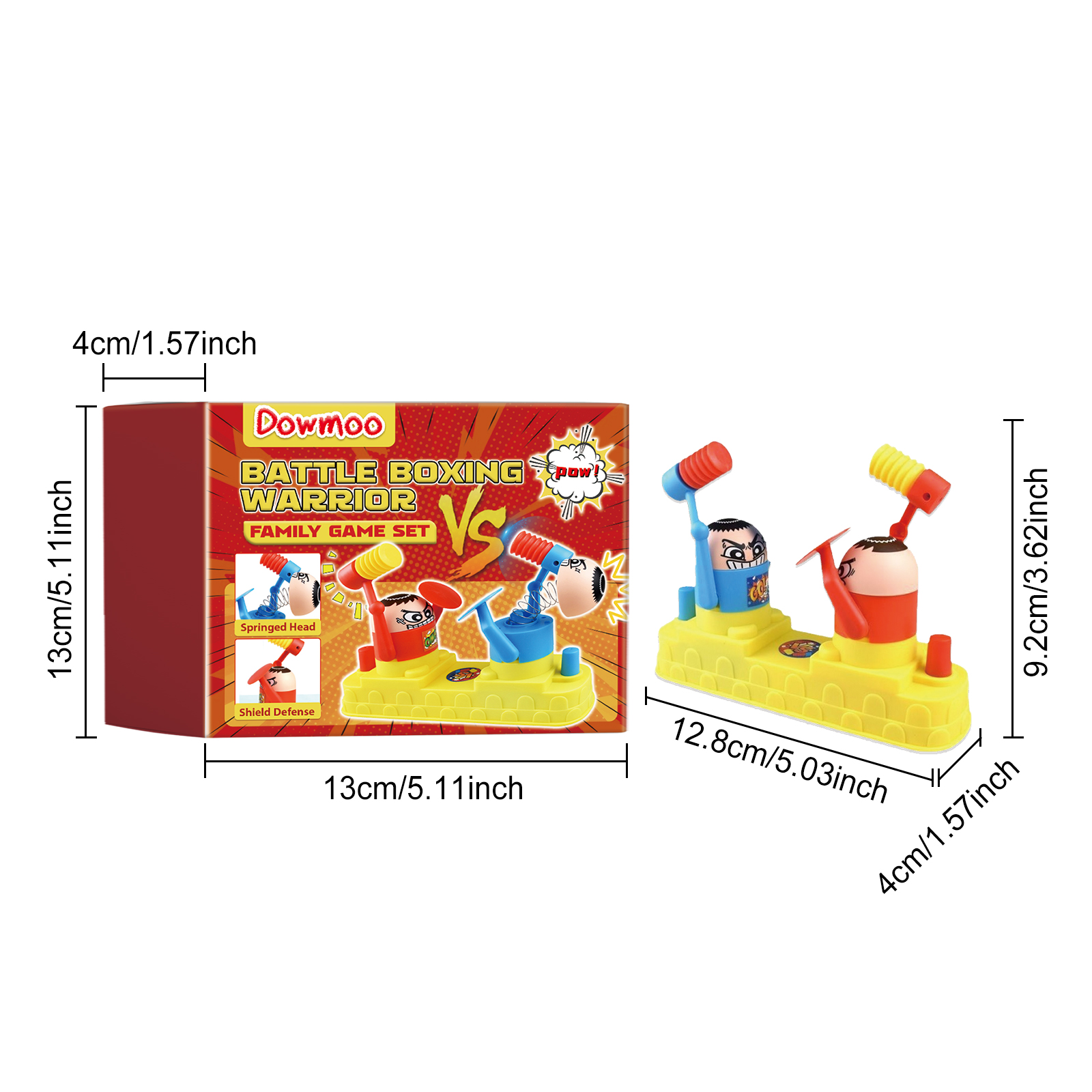 我们的战斗拳击战士家庭游戏套装含有Abs塑料,聚丙烯。它可以通过互动游戏鼓励早期学习,帮助孩子发展协调性和快速反应能力。它的使用方法很简单:开始游戏,并按下后面的红色(蓝色)按钮的小人攻击,攻击时使用锤子打击对手,释放按钮使用盾牌来防御,抓住对手松开盾牌并击中对手头部的瞬间,对手的头被弹开,你就赢了。可以通过其吸引人的设计和简单的控制,提高儿童的手眼协调能力。