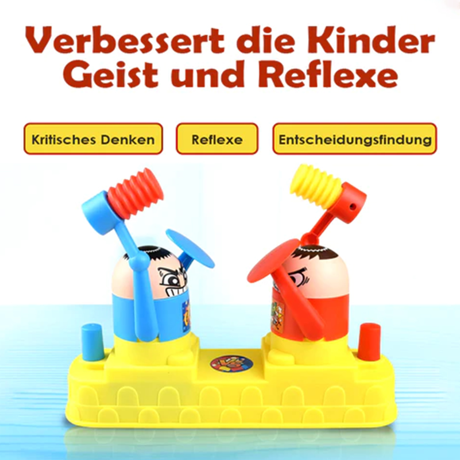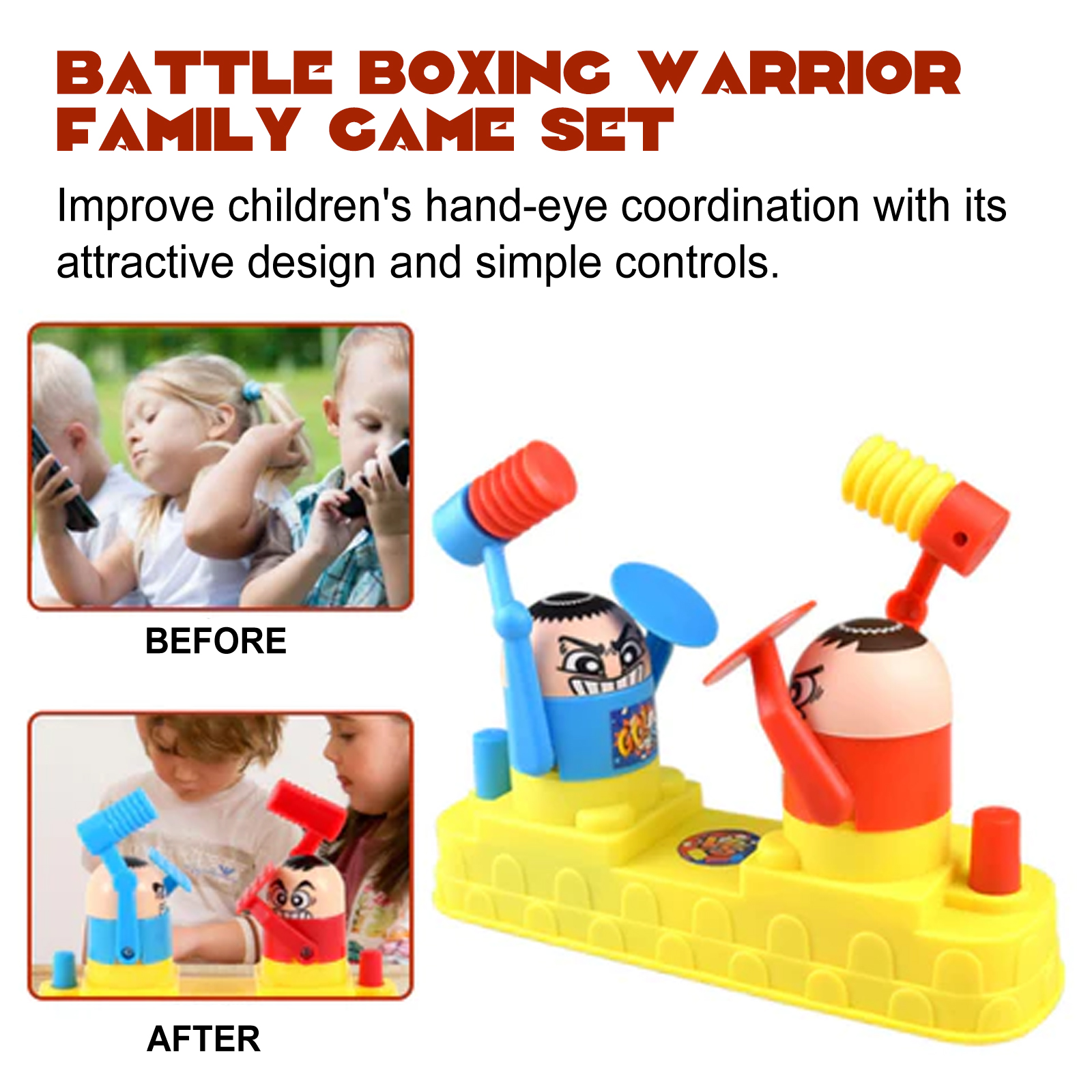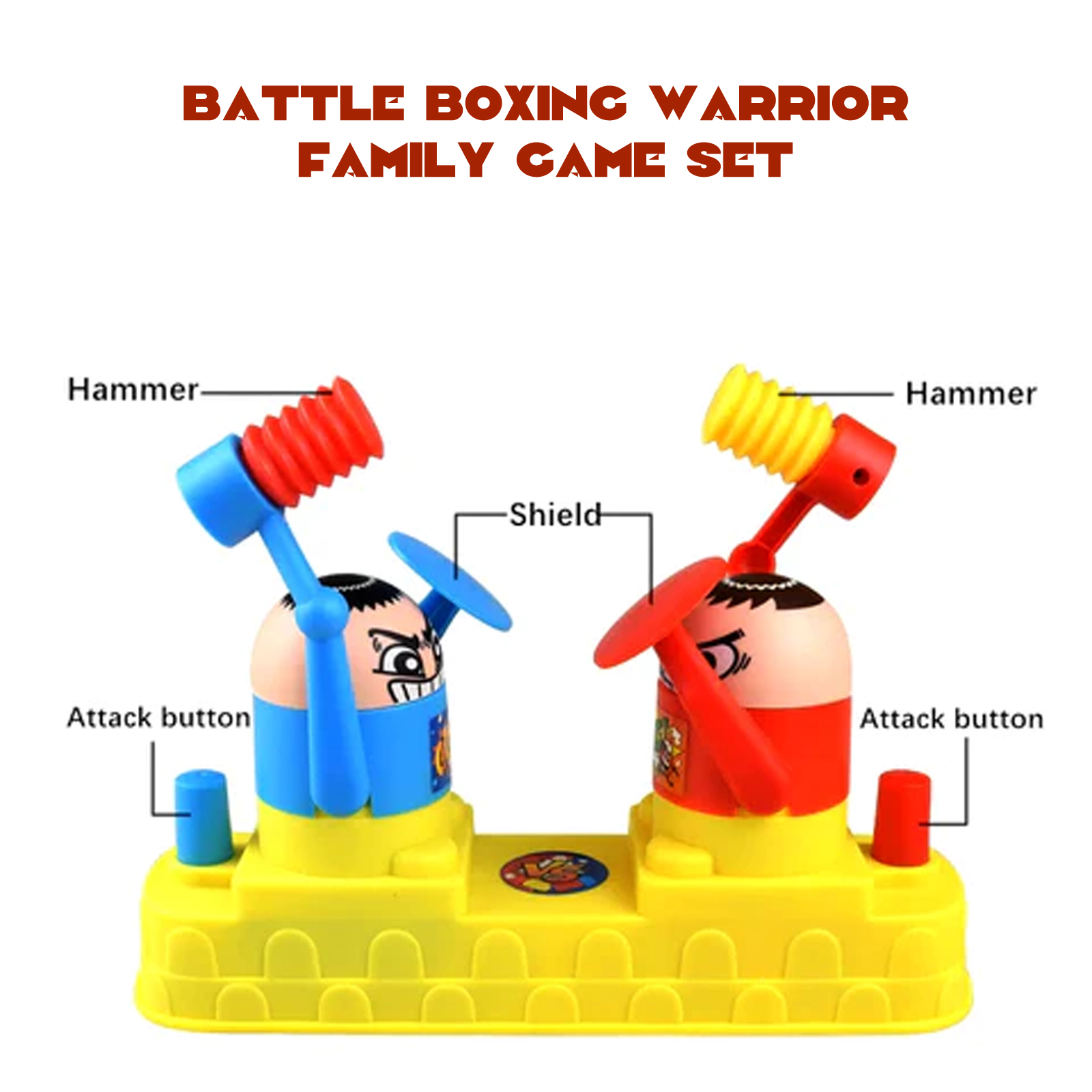 我们的战斗拳击战士家庭游戏套装含有Abs塑料,聚丙烯。它可以通过互动游戏鼓励早期学习,帮助孩子发展协调性和快速反应能力。它的使用方法很简单:开始游戏,并按下后面的红色(蓝色)按钮的小人攻击,攻击时使用锤子打击对手,释放按钮使用盾牌来防御,抓住对手松开盾牌并击中对手头部的瞬间,对手的头被弹开,你就赢了。可以通过其吸引人的设计和简单的控制,提高儿童的手眼协调能力。