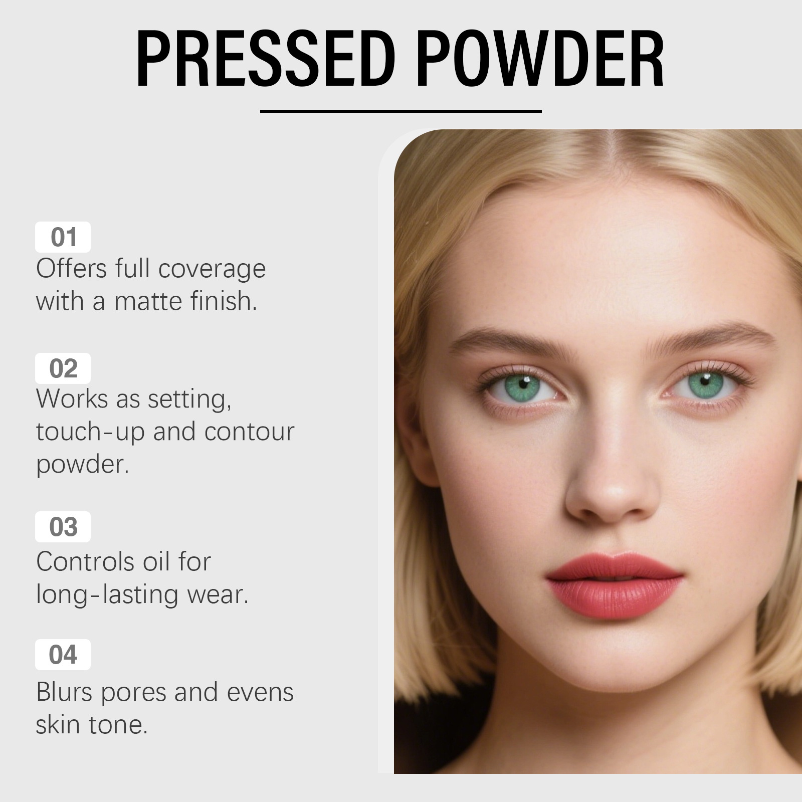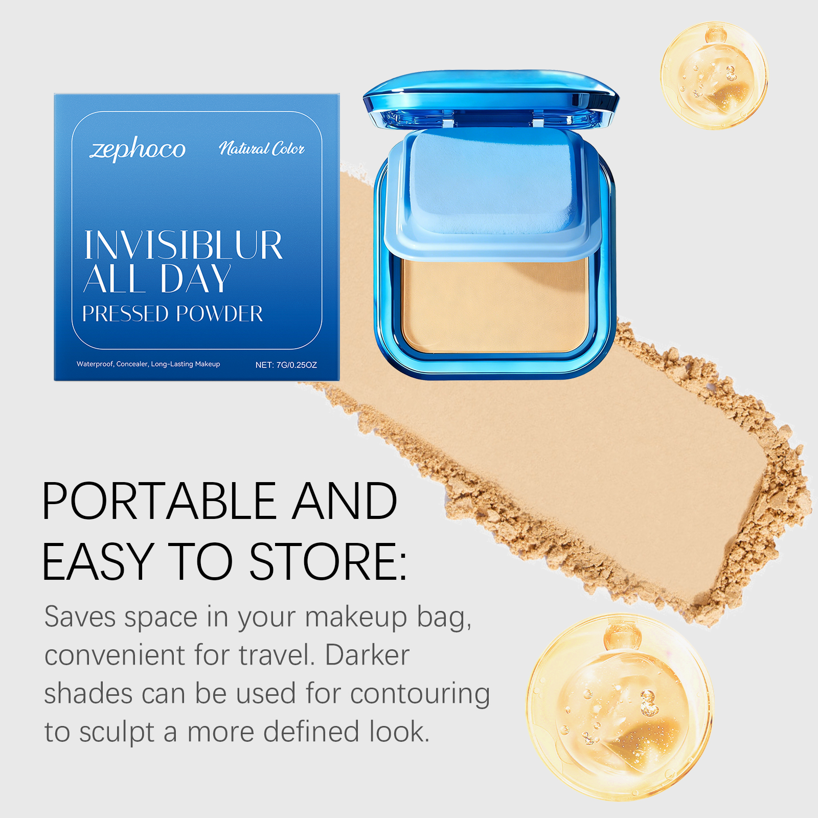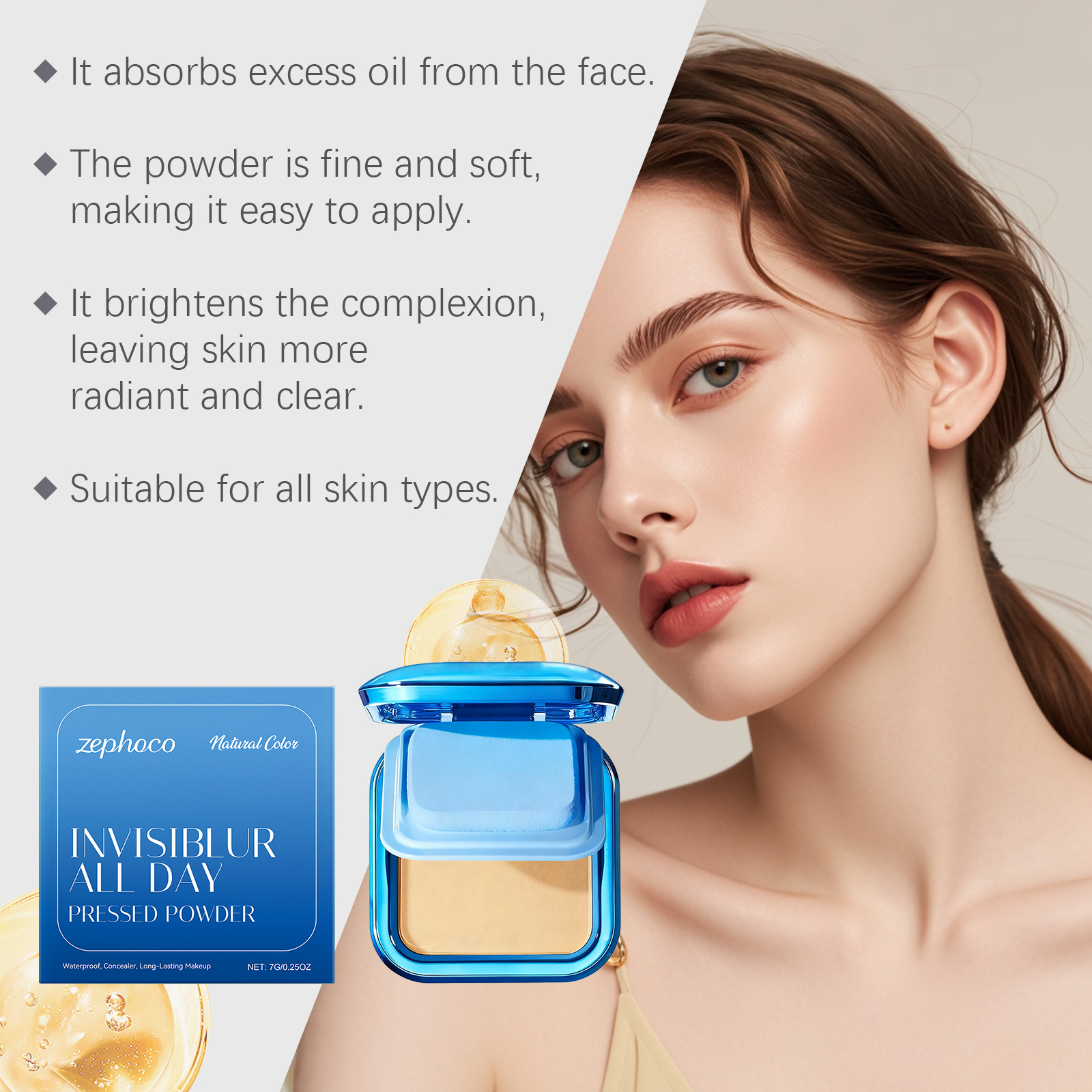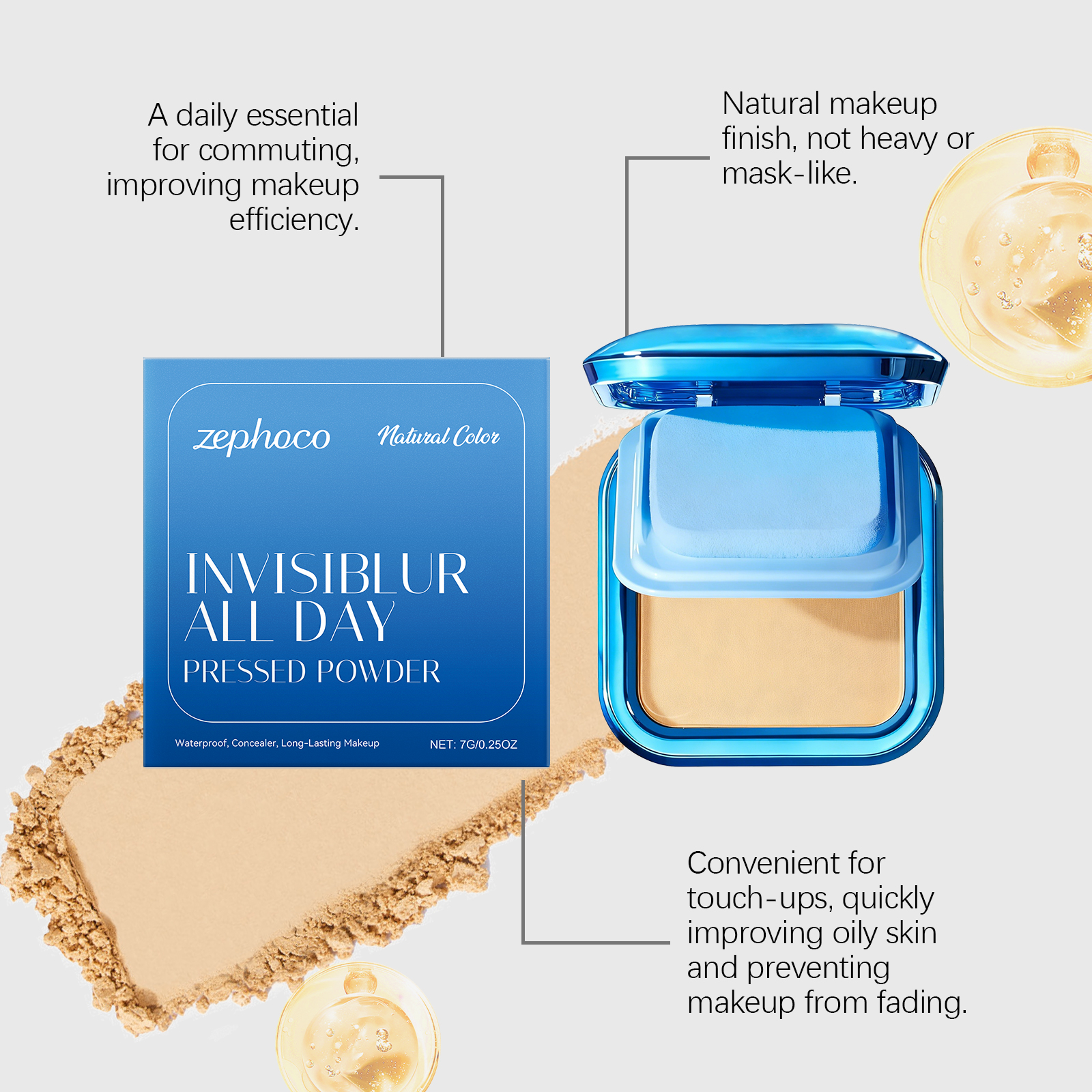 我们的哑光无暇粉饼(自然色),由二氧化钛、矿油精心调配而成。专为减少化妆步骤,节省时间和精力。均匀肤色并遮盖轻微瑕疵设计。使用方法极为便捷:化妆后,使用粉扑轻轻按压和拍打粉饼以减少油光、打造均匀妆容并定妆。并且它控油并保持精致的妆容效果。它采用哑光质地,带来柔和无瑕的妆效。