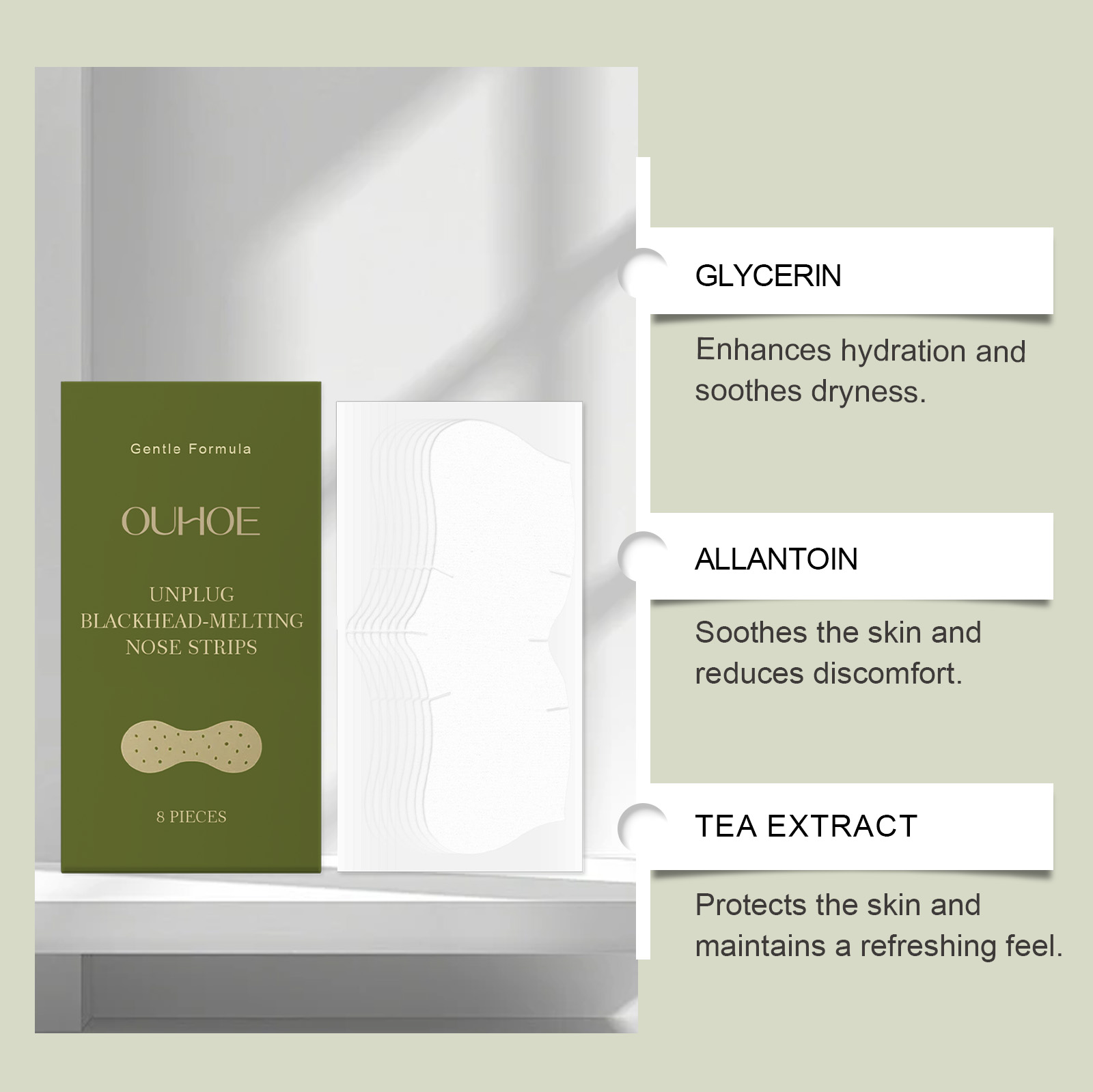 我们的清洁护理鼻贴,由壬二酸、尿囊素精心调配而成。专为紧密贴合鼻部,防止滑动或移位设计。使用方法极为便捷:清洁并擦干你的鼻子。撕下背衬膜,贴上鼻贴,并保持5-10分钟。取下鼻贴,轻轻按压以清除杂质。并且采用独立包装的单件产品,便于旅行期间不间断地进行护肤。