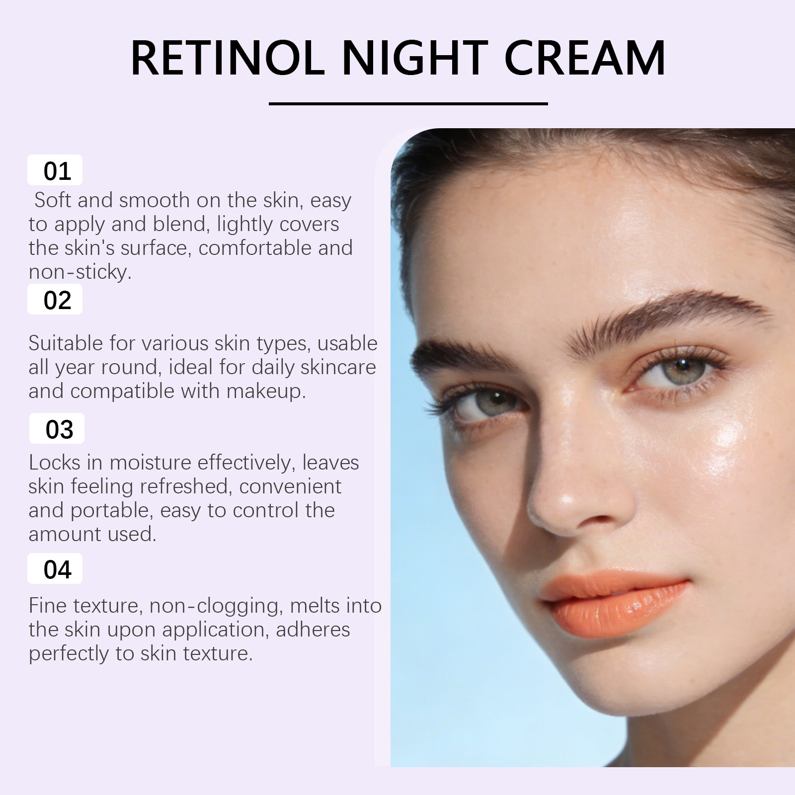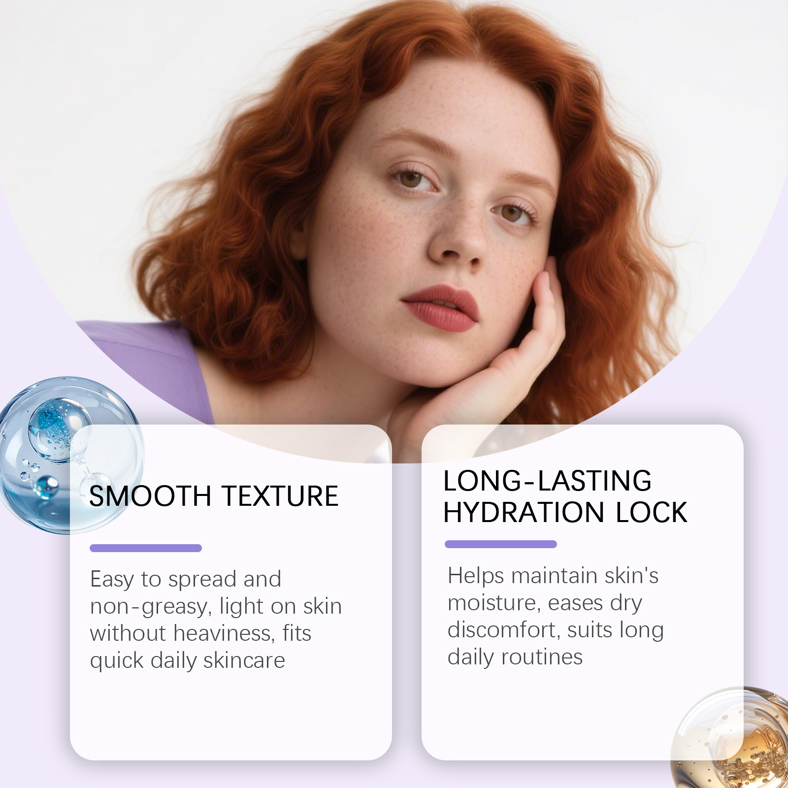 我们的润肤保湿霜,由甘油、矿油精心调配而成。专为有效锁住水分,使肌肤感觉清爽设计。使用方法极为便捷:1.清洁并擦干面部。2.将适量本产品均匀涂抹于面部。3.轻柔按摩以促进吸收。并且它可以有助于保持皮肤水分,缓解干燥不适,适合日常长时间使用。