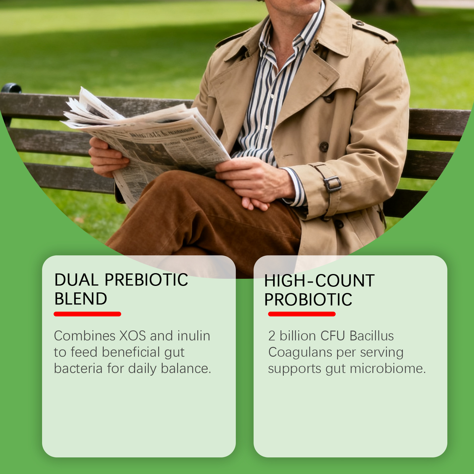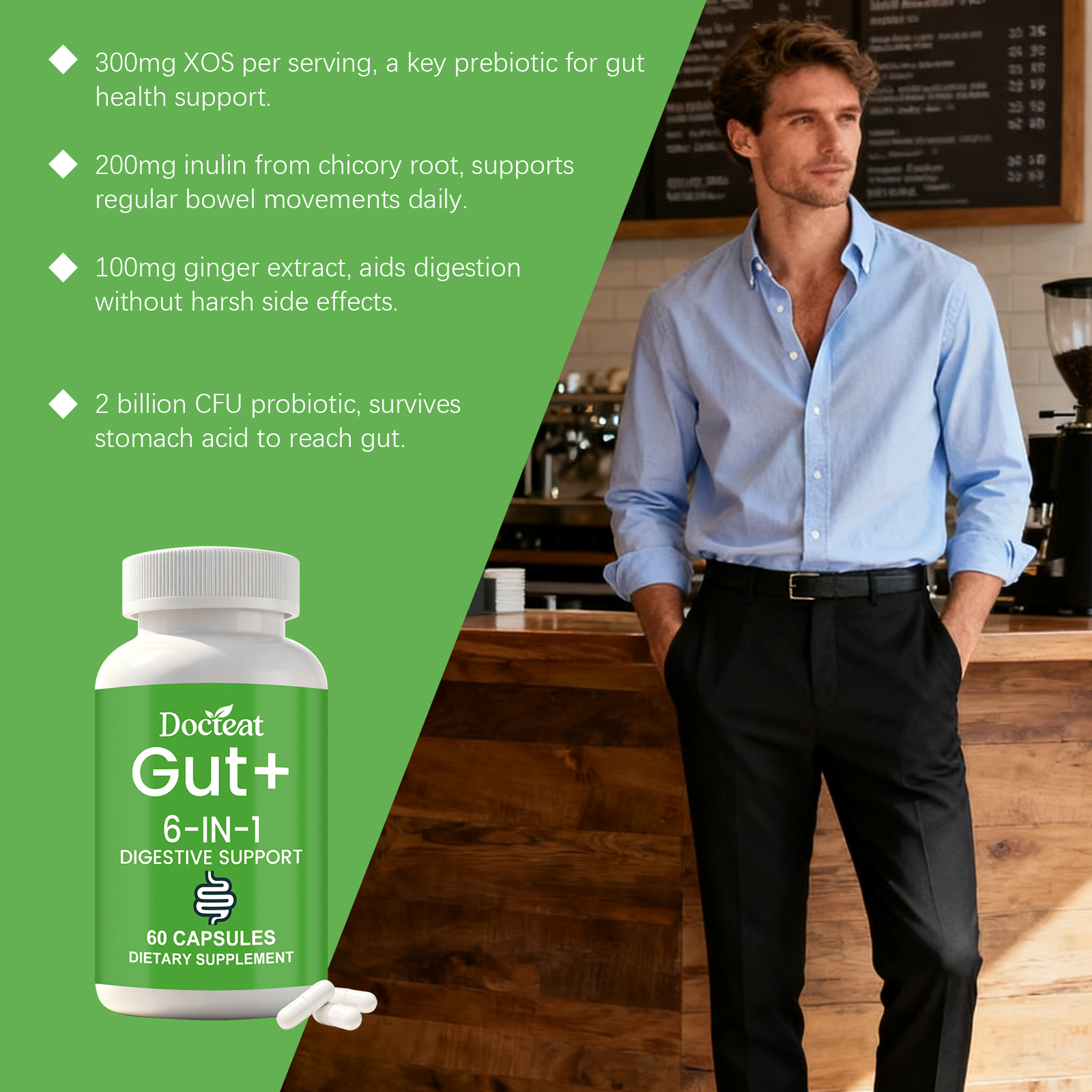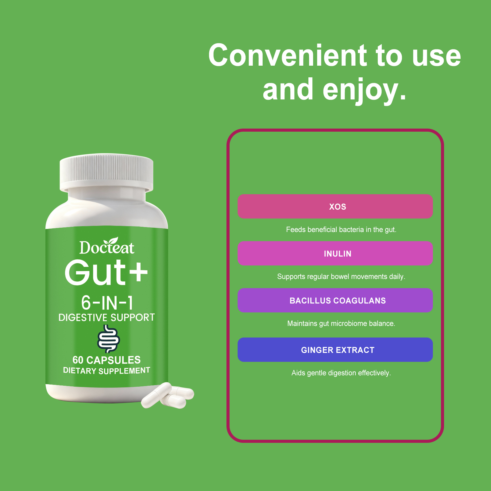 我们的6合1肠道支持胶囊,由低聚木糖、菊粉精心调配而成。专为结合XOS和菊粉,为肠道有益菌提供营养以维持日常平衡设计。使用方法极为便捷:每日一次,每次两粒胶囊,整粒吞服。并且它每份含有20亿CFU的凝结芽孢杆菌,支持肠道微生物群。