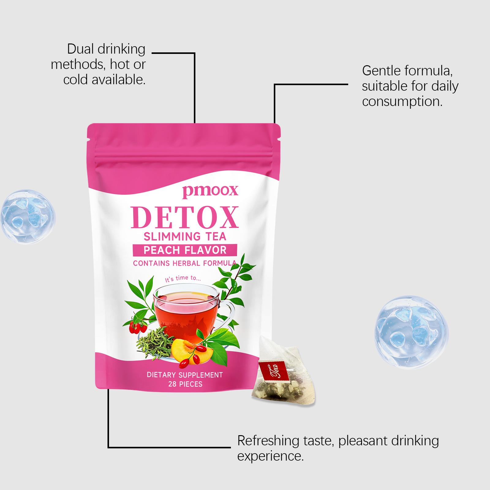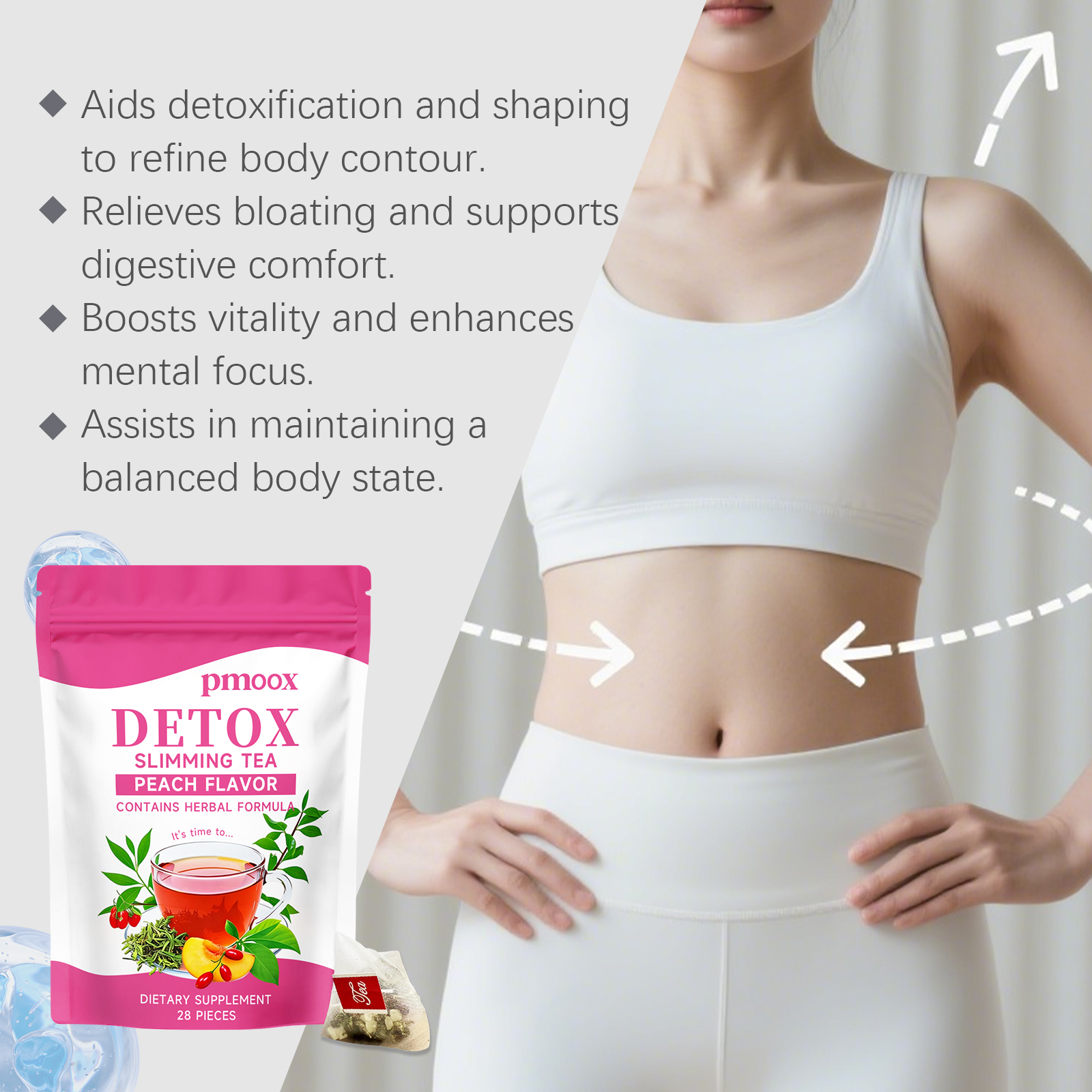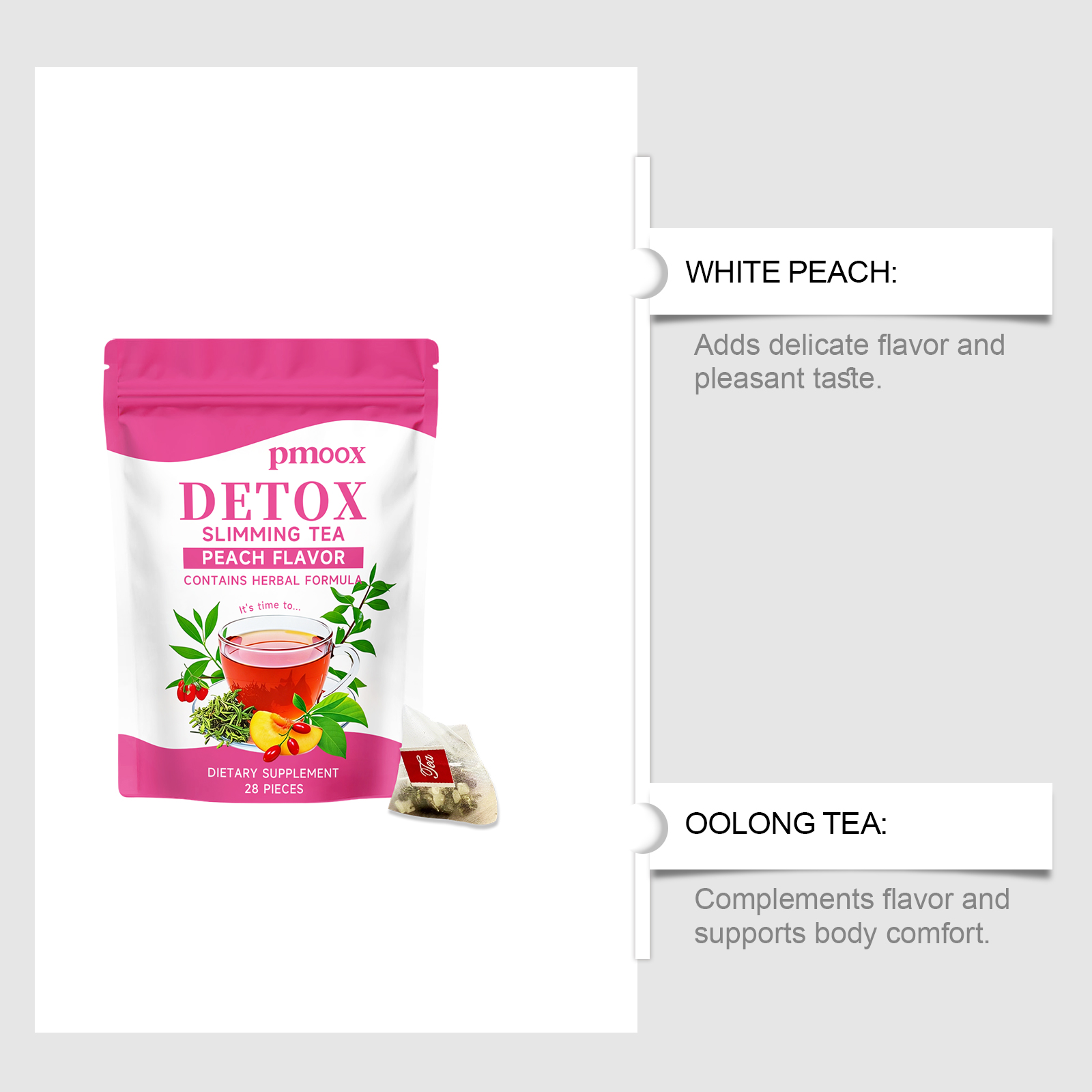 我们的纤韵护理茶,由白桃、乌龙茶精心调配而成。专为辅助排毒塑形,优化身体线条,舒缓腹胀不适,呵护消化状态设计。使用方法极为便捷:1.打开包装袋,将茶包放入杯中。2.将水煮至约90°C,倒入杯中浸泡茶包。3.静置浸泡3-5分钟,尽情享受香醇茶饮。并且它可以提升身体活力,增强专注力,助力维持体态均衡,舒适自在。