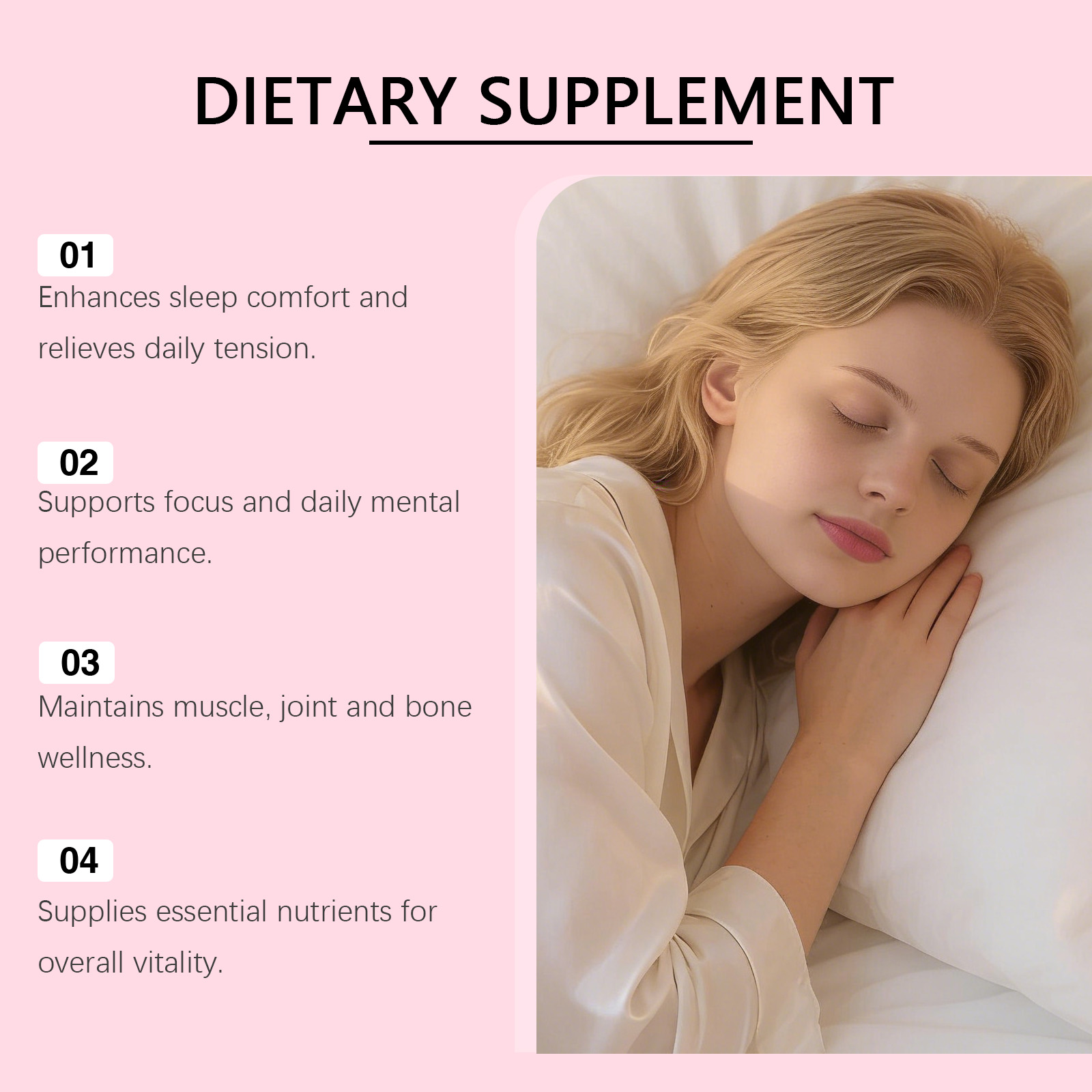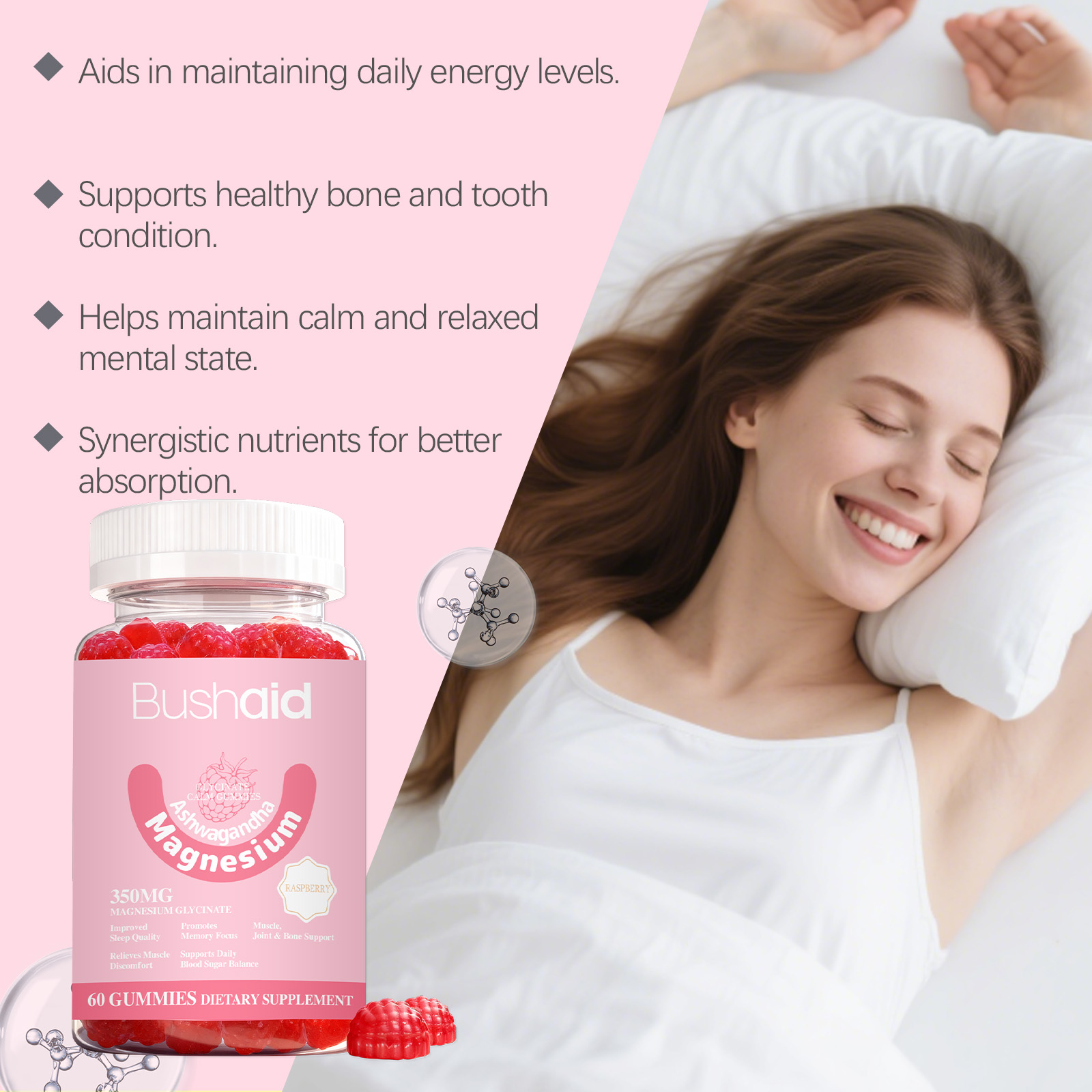 我们的镁复合维生素软糖,由维生素B6(盐酸吡哆醇)、维生素D3(胆钙化醇)精心调配而成。专为优化睡眠舒适感,舒缓日常紧张状态,助力专注力,提升日常脑力表现设计。使用方法极为便捷:每天服用两粒软糖,彻底咀嚼。并且它可以呵护肌肉关节骨骼,维持良好状态,补充必需营养素,焕活整体活力。