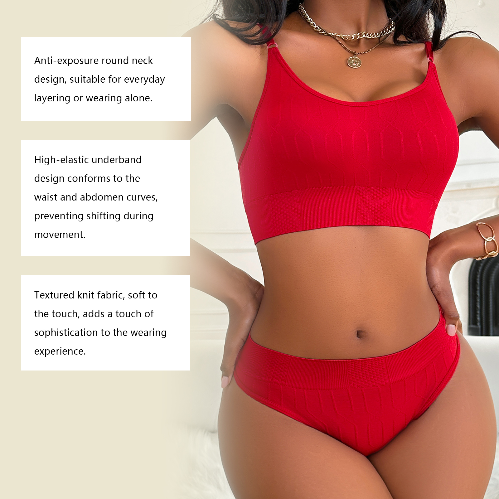 我们的高腰细肩带内衣裤套装,由锦纶92.00%、氨纶8.00%精心制作而成。专为贴合腰部和腹部曲线,防止运动时移位设计。并且它用纹理针织面料,触感柔软,为穿着体验增添一丝精致感。