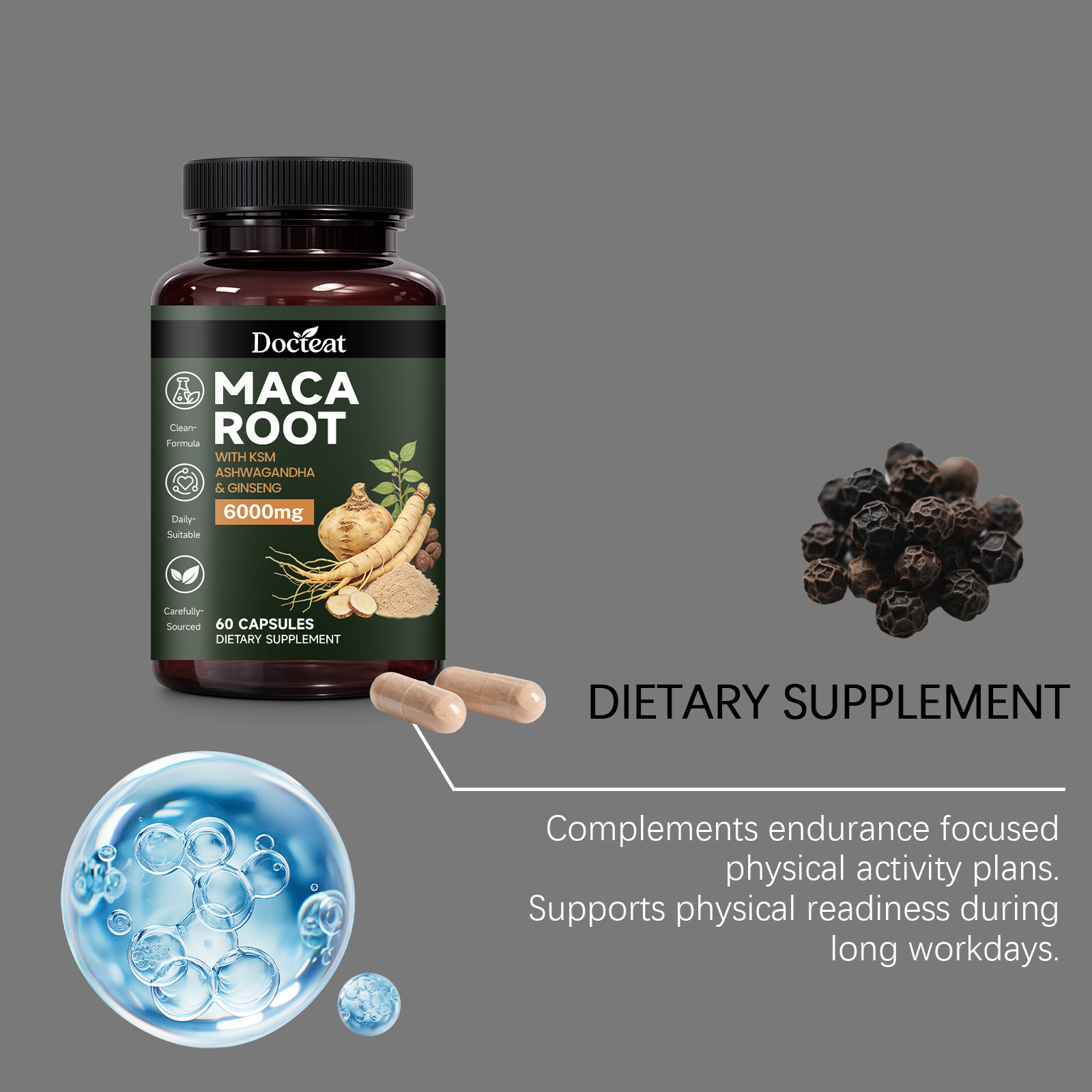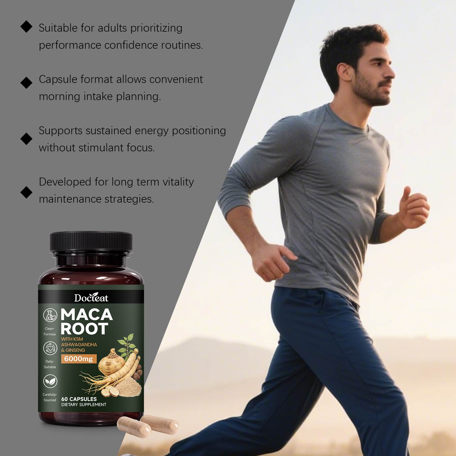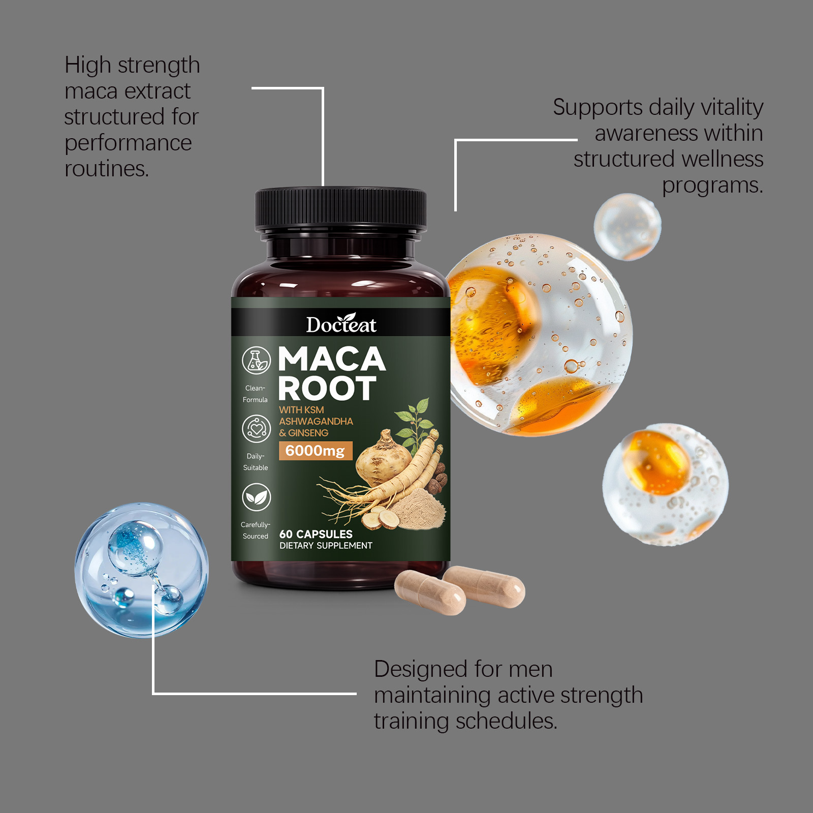 我们的稳定男性活力,由玛卡根、南非醉茄根提取物精心调配而成。专为注重保持持续体力输出和保持活力的个人设计。使用方法极为便捷:每日服用 2 粒,每日一次。本品旨在助力男性在积极的生活方式和有规律的健身计划中保持精力充沛。有助于维持因高强度训练和复杂训练周期而产生的持久体力。