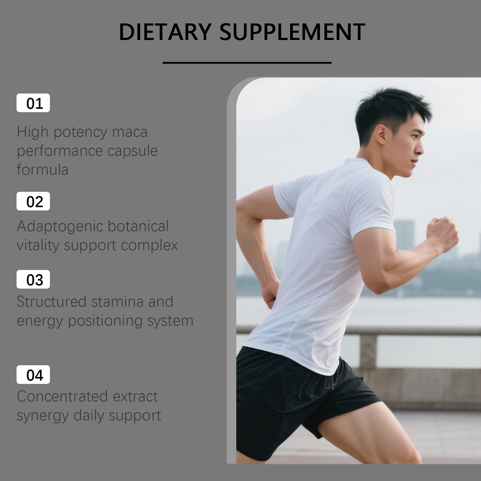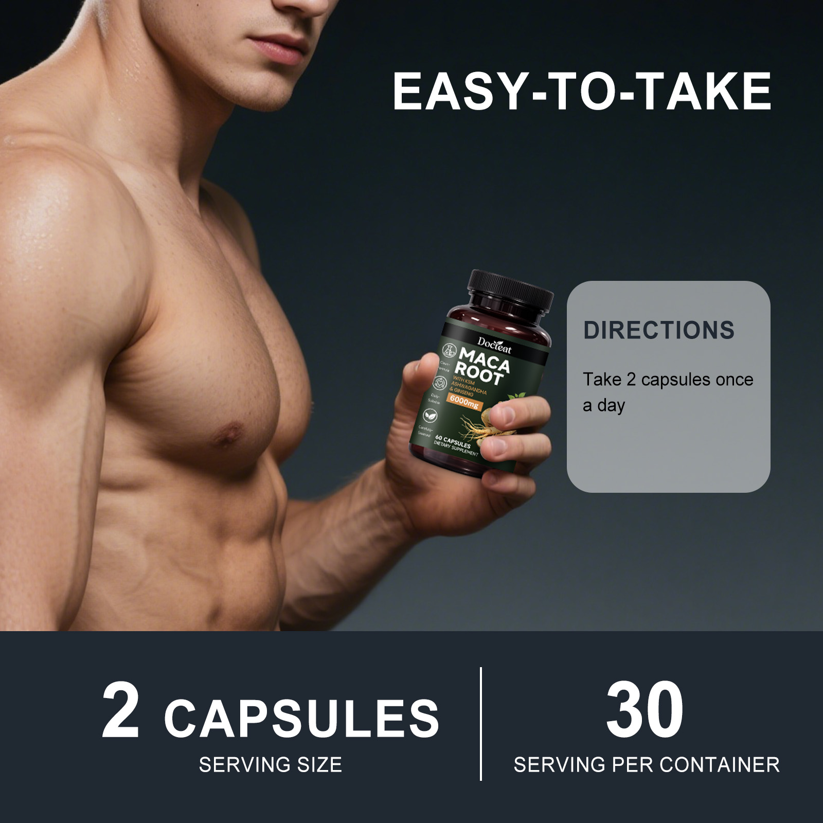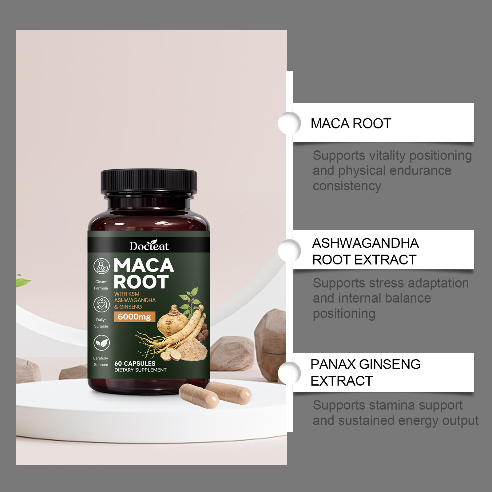我们的稳定男性活力,由玛卡根、南非醉茄根提取物精心调配而成。专为注重保持持续体力输出和保持活力的个人设计。使用方法极为便捷:每日服用 2 粒,每日一次。本品旨在助力男性在积极的生活方式和有规律的健身计划中保持精力充沛。有助于维持因高强度训练和复杂训练周期而产生的持久体力。