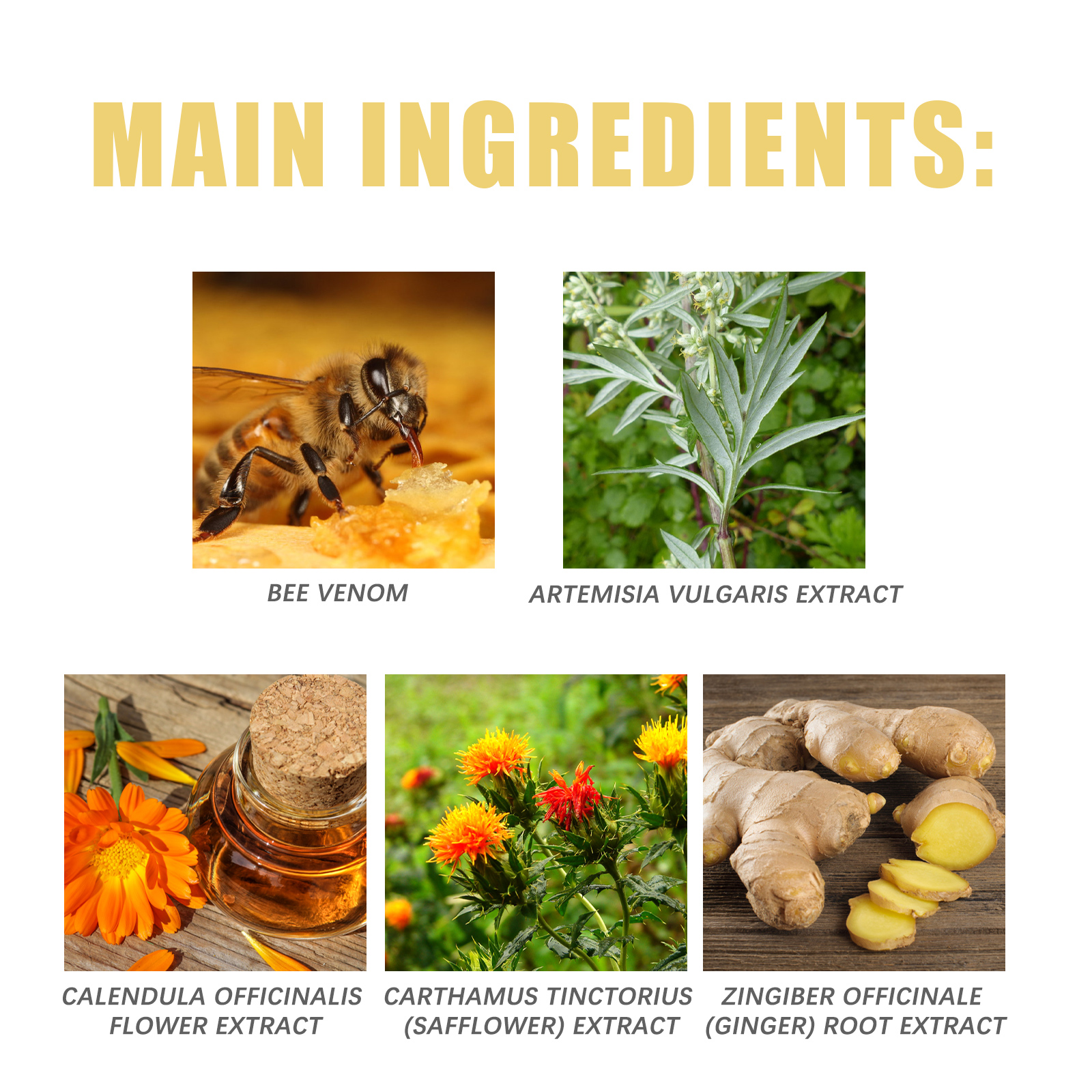蜂毒、艾草提取物、金盏花提取物