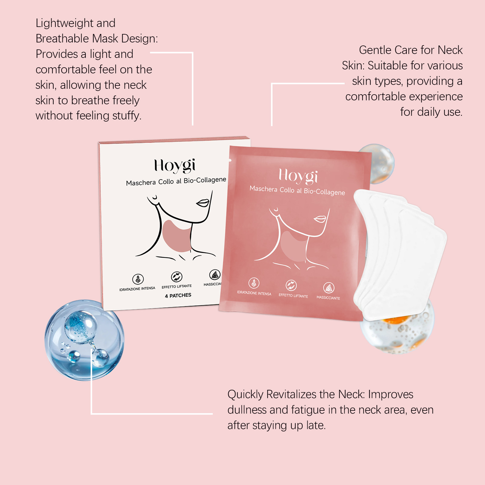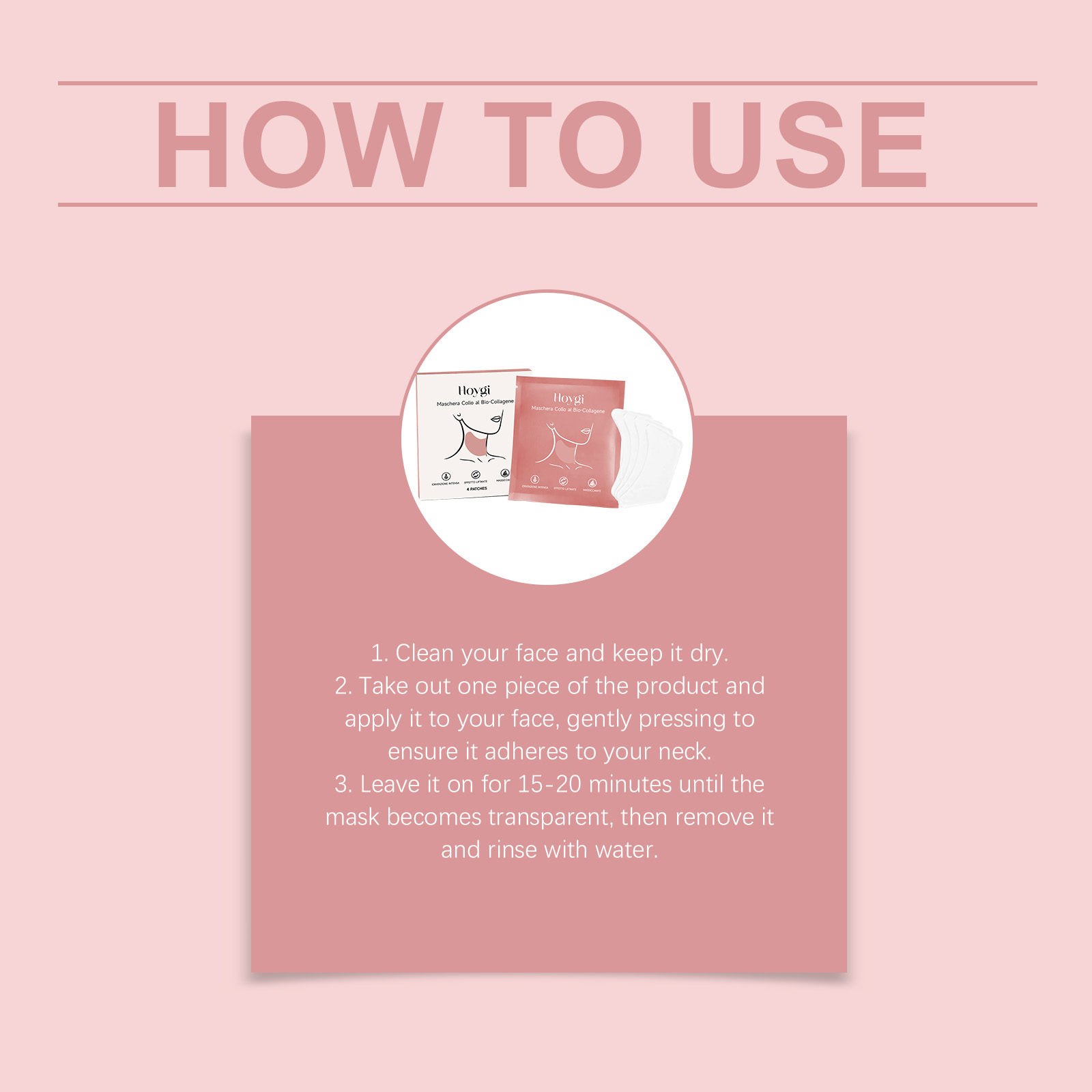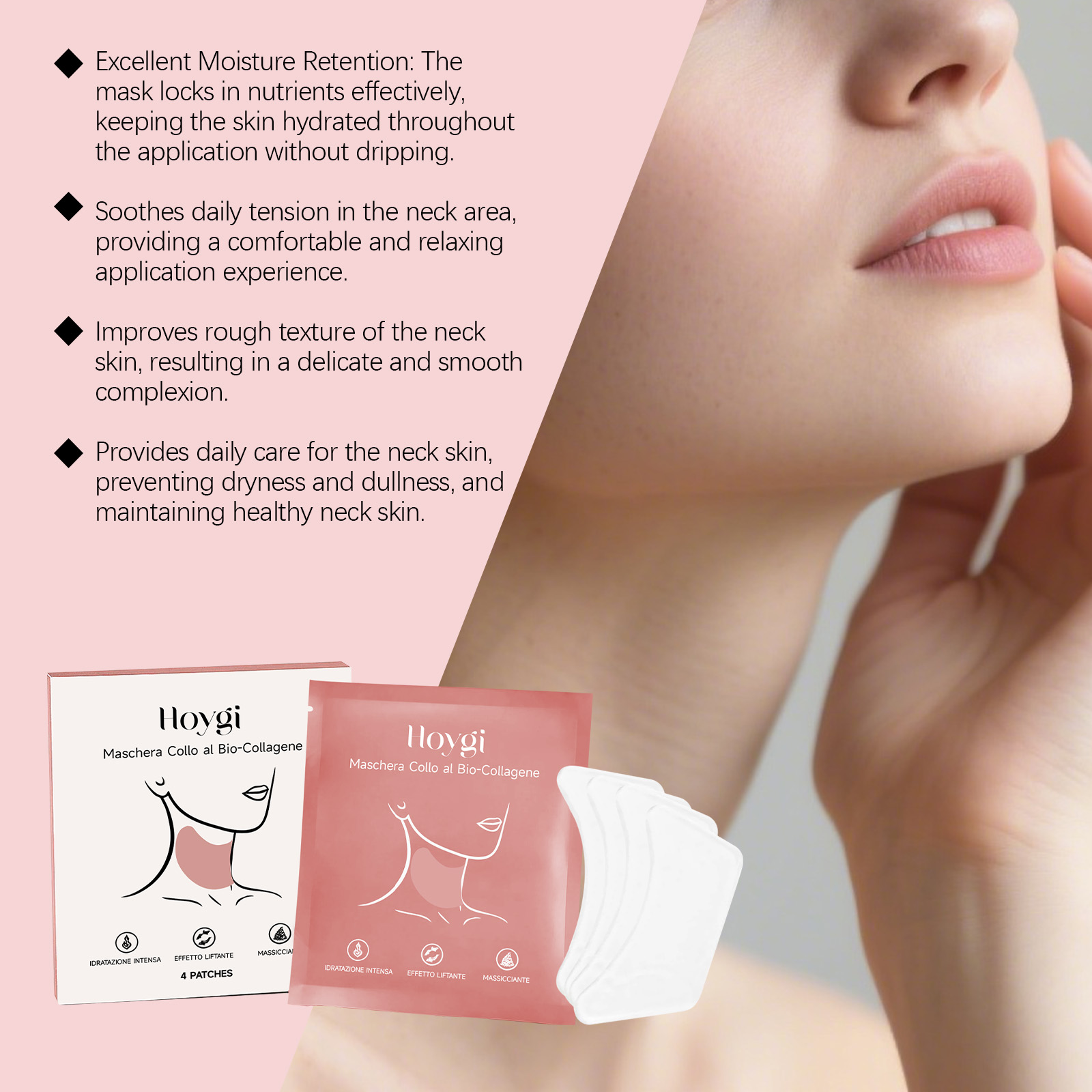 我们的生物胶原蛋白颈膜,由甘油、1,2-己二醇精心调配而成。专为舒缓颈部日常紧张、改善颈部肌肤粗糙纹理、提供颈部日常护理设计。使用方法极为便捷:清洁面部并保持干燥,取出一片敷在颈部,轻轻按压使其贴合,敷15-20分钟至面膜变透明后取下并用水冲洗,使用后舒缓颈纹,软化平滑颈部肌肤纹理,提升颈部肌肤紧致度,提亮暗沉肤色,有效锁留营养保持肌肤水润。
