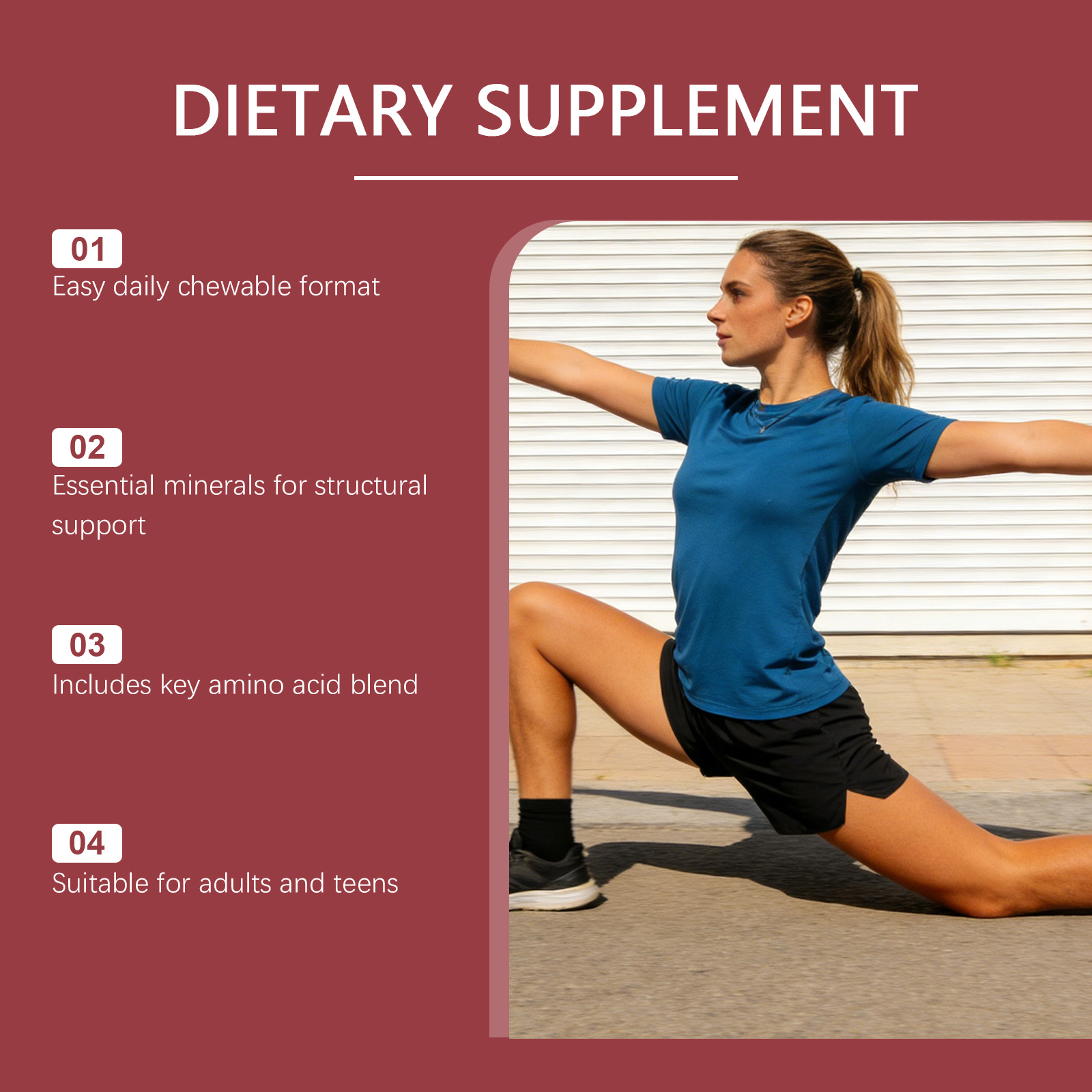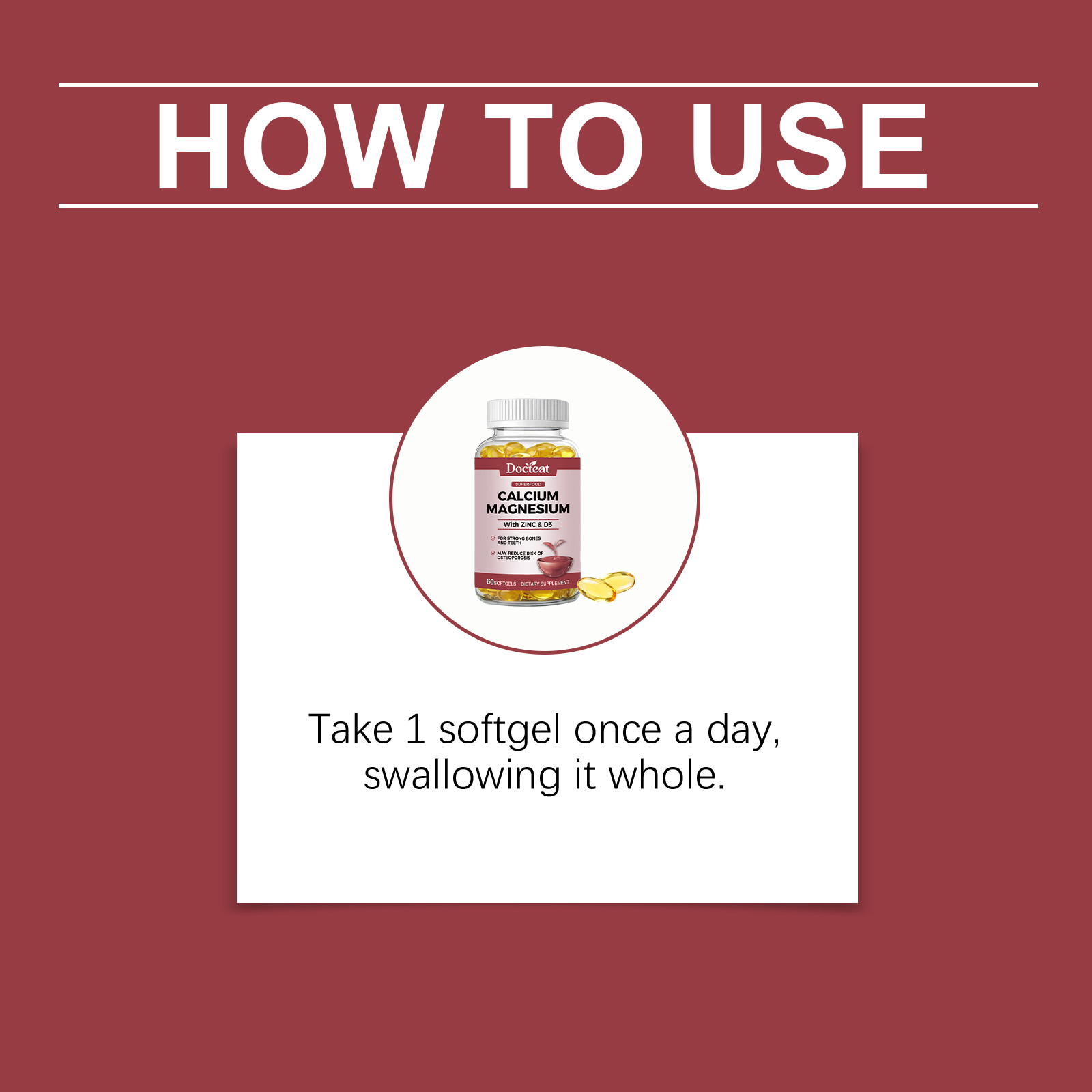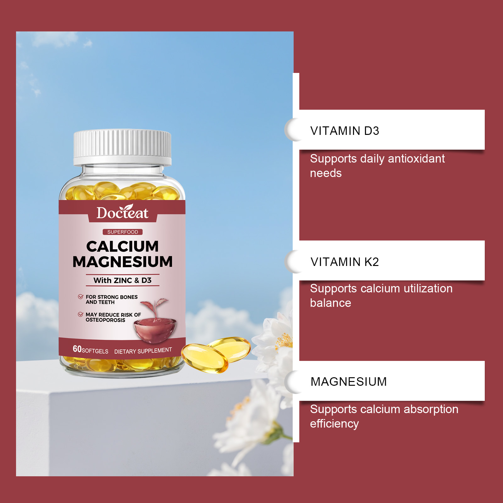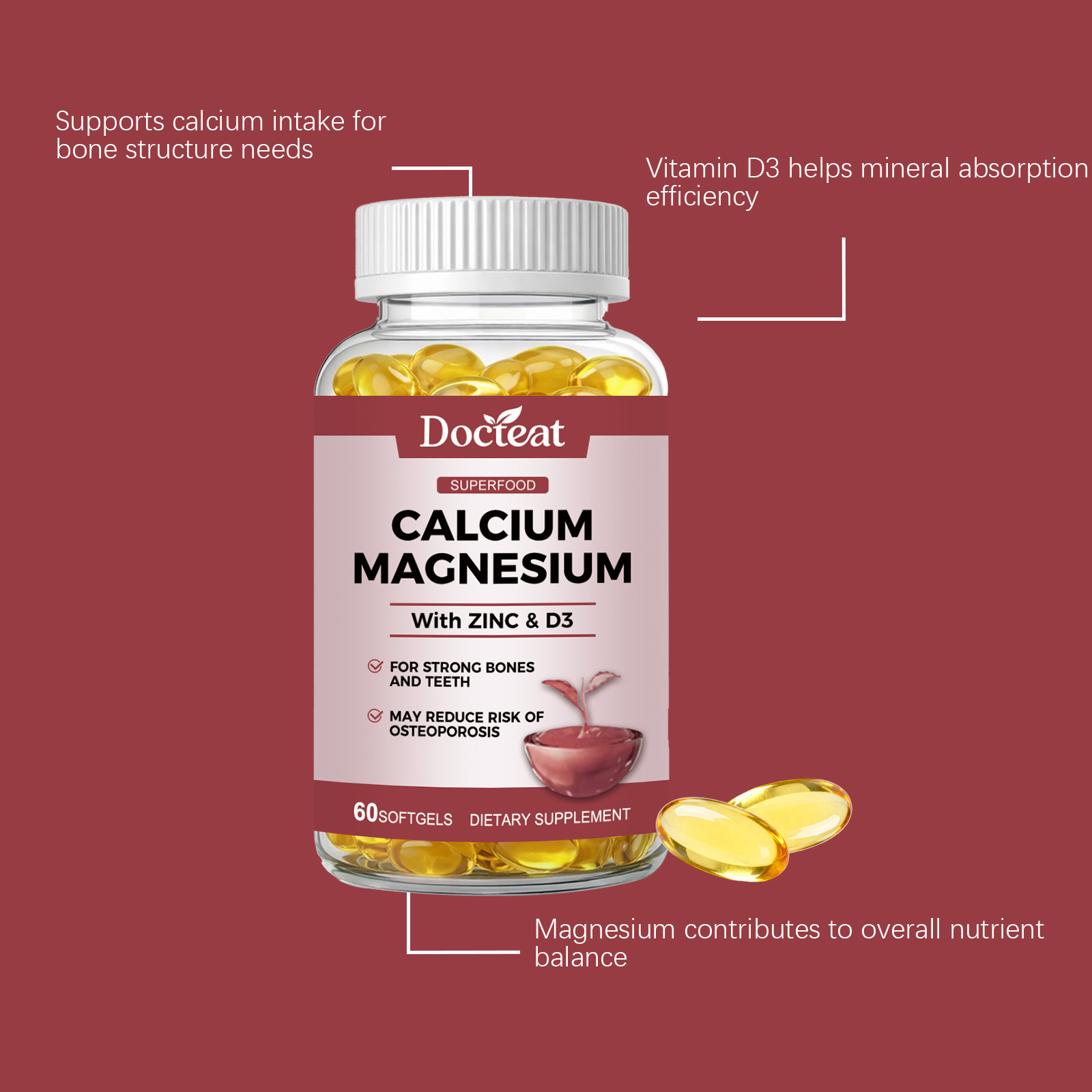 我们的骨骼支持胶囊,由钙、镁精心调配而成。专为日常骨骼营养支持、维护骨骼结构设计。使用方法极为便捷:每日服用1粒软胶囊,整粒吞服,使用后有助于增强骨骼和牙齿健康,帮助钙吸收,可能降低骨质疏松风险,支持运动恢复和关节健康,维持整体营养平衡。