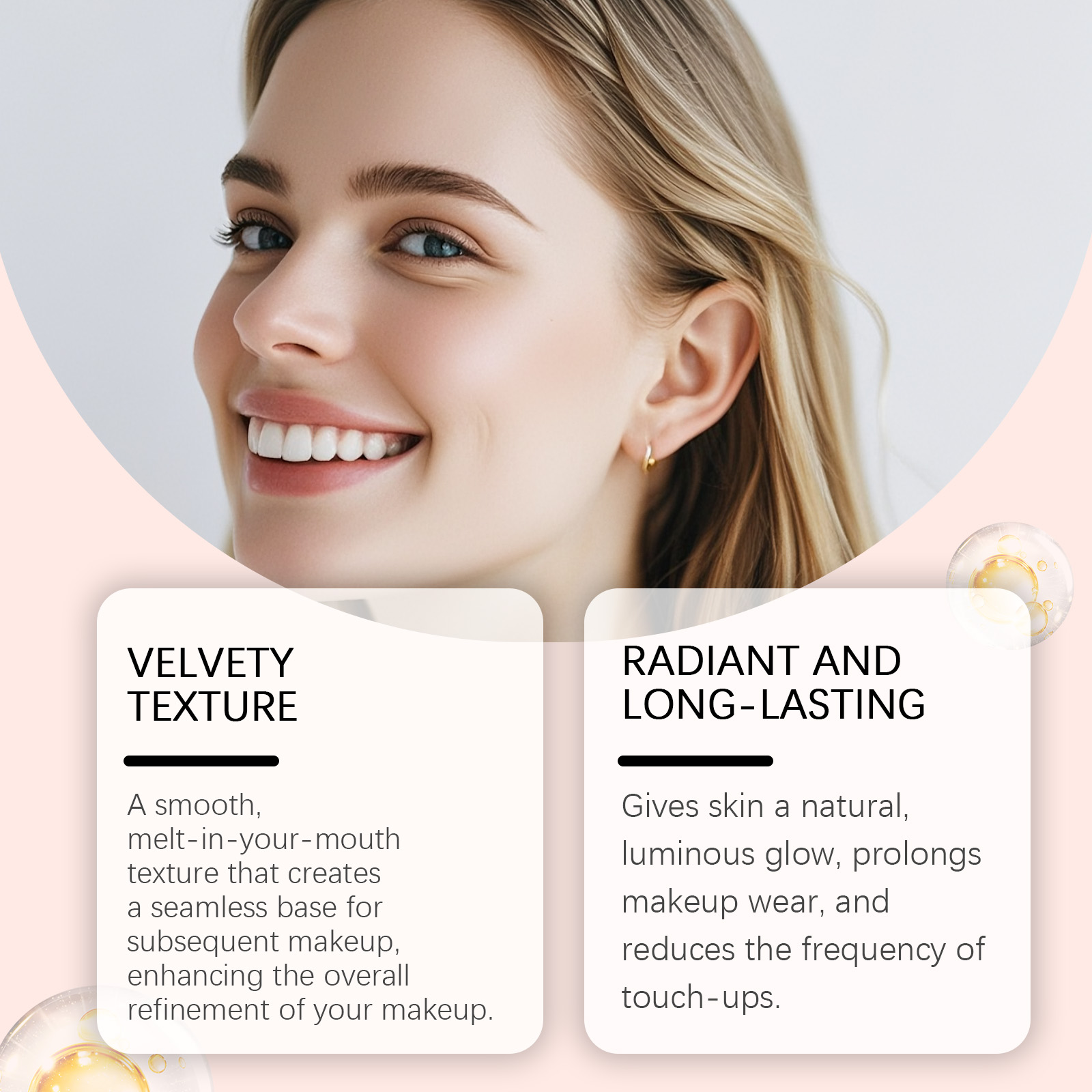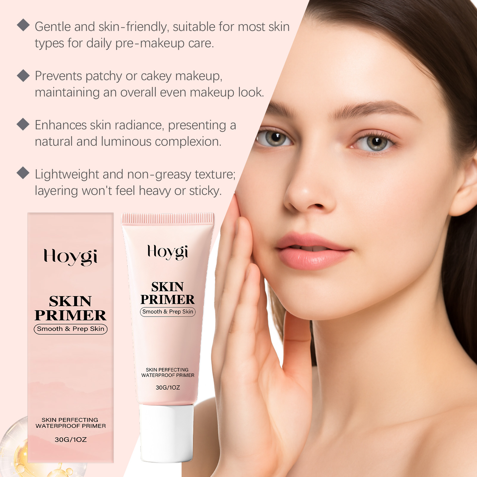 我们的毛孔隐形妆前乳,由甘油、透明质酸精心调配而成。专为打造清透自然的妆前底妆、隐匿毛孔和细纹、提升底妆质感与贴合度设计。使用方法极为便捷:洁面爽肤后取适量涂抹于面部,用指腹打圈按摩至完全吸收,随后进行粉底等后续上妆步骤。使用后肌肤呈现平滑细腻质感,底妆服帖不卡粉,持久保持自然光泽,同时补充肌肤水分,改善干燥起皮,提升整体妆容精致度。