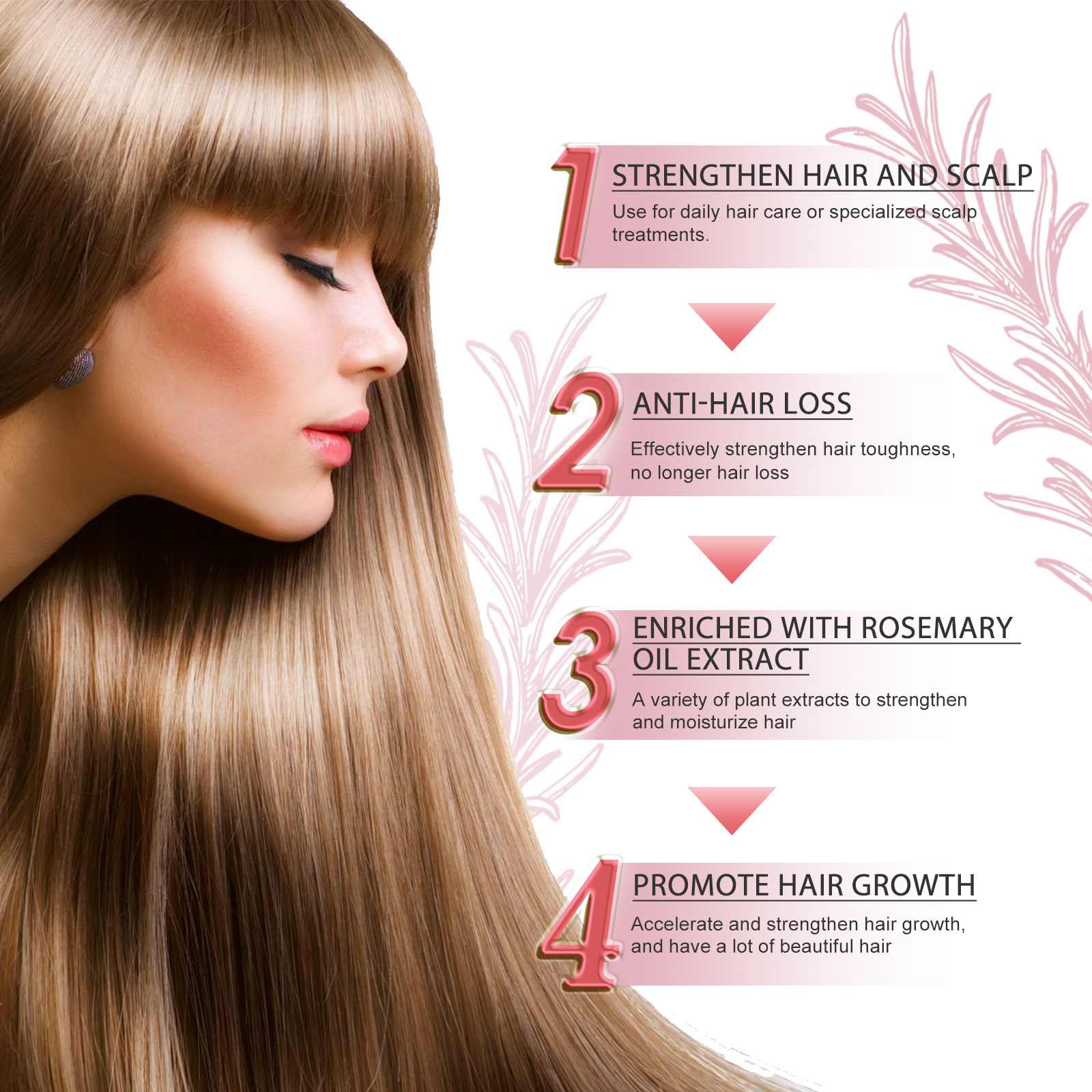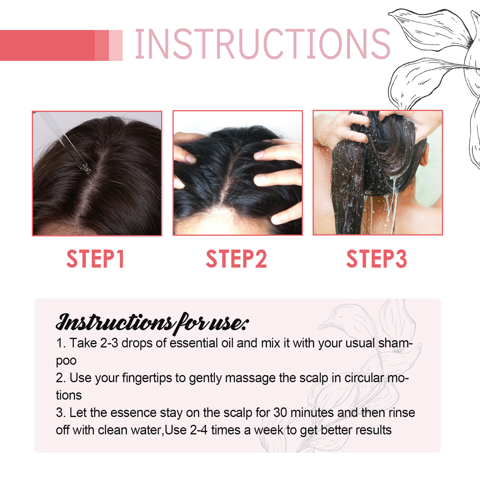 我们的密发精油含有甘油、羟乙基纤维素。它可以强健头发和头皮,用于日常头发护理或专门的头皮治疗。有效增强头发韧性,不再脱发;加入迷迭香油提取多种植物提取物,增强和滋润头发;促进头发生长,加速和加强头发生长,拥有许多美丽的头发。它的使用方法很简单:1.取2-3滴精油,与你常用的洗发水混合;2.用指尖轻轻按摩头皮,做圆周运动;3. 让精华液在头皮上停留30分钟,然后用清水洗净,每周使用2-4次,效果更好。密发精油这种强化护理保护和滋养头发,减少进一步的脱发和断裂。它使头发恢复活力,防止进一步变薄,并促进新的浓密头发生长。