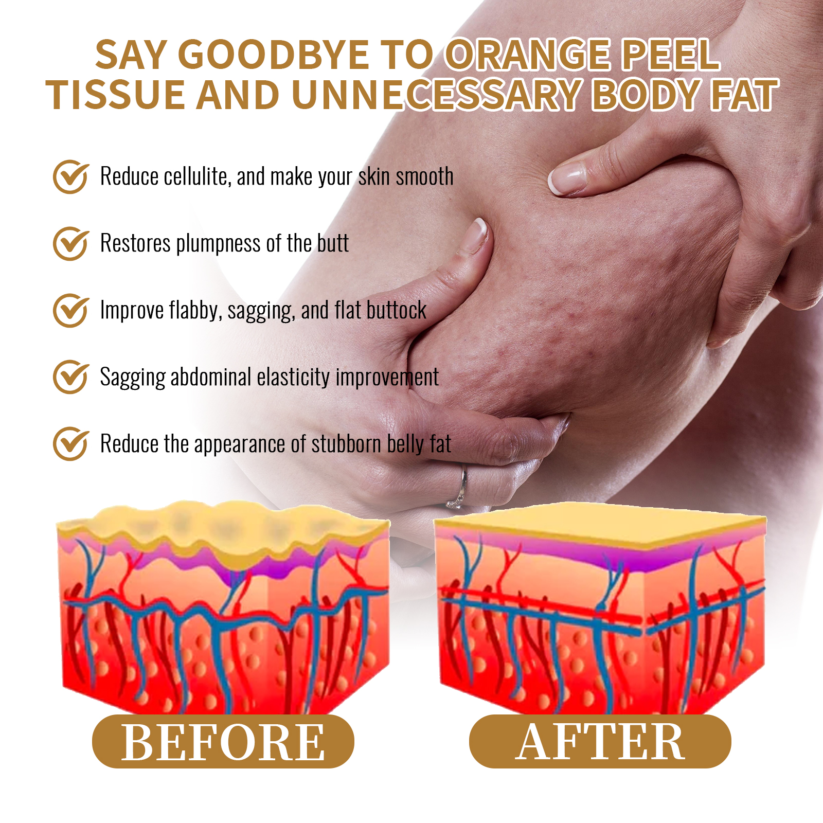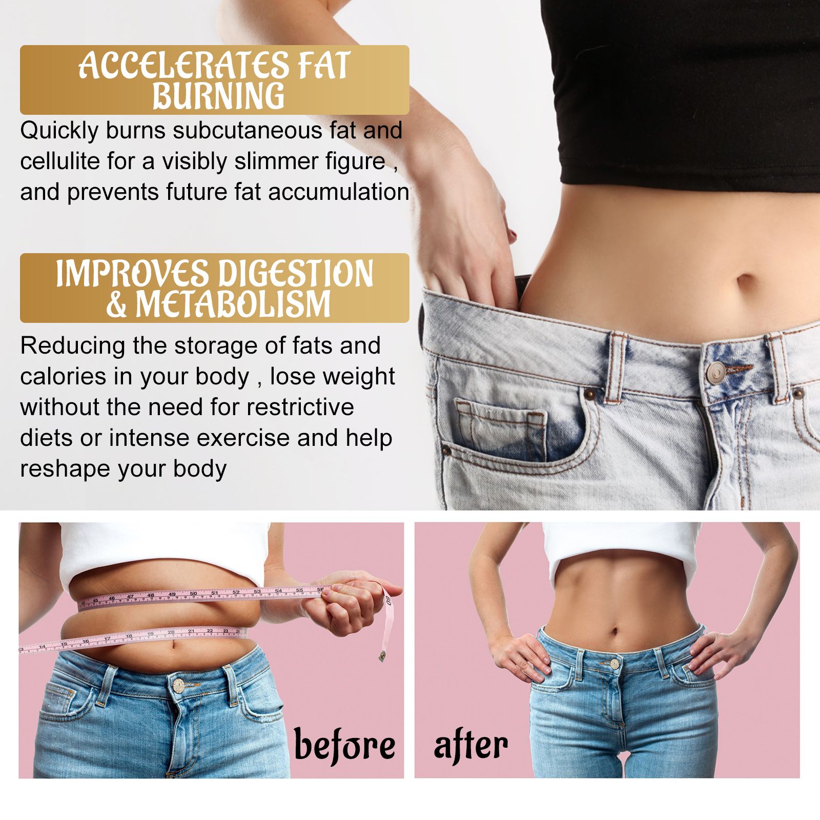 我们的塑身精油含有辣椒素、当归提取物、决明子提取物。它可以减少脂肪团,使皮肤光滑,恢复臀部丰满,改善松弛、下垂、扁平的臀部,改善下垂的腹部弹性,减少顽固腹部脂肪的出现。它的使用方法很简单:步骤1.使用前摇匀,确保配料充分混合。步骤2.取少量的混合物放在手掌或指尖上。步骤3.将混合物轻轻按摩到你想要的部位,如大腿、臀部或任何其他目标部位。继续做圆周运动按摩,直到混合物完全被皮肤吸收。步骤4.为了获得最佳效果,每天使用两次,最好在早上和晚上使用。塑身精油渗透皮肤,针对脂肪细胞,促进脂肪分解和转化为能量,帮助紧致和紧实皮肤,给它一个光滑和更年轻的外观。