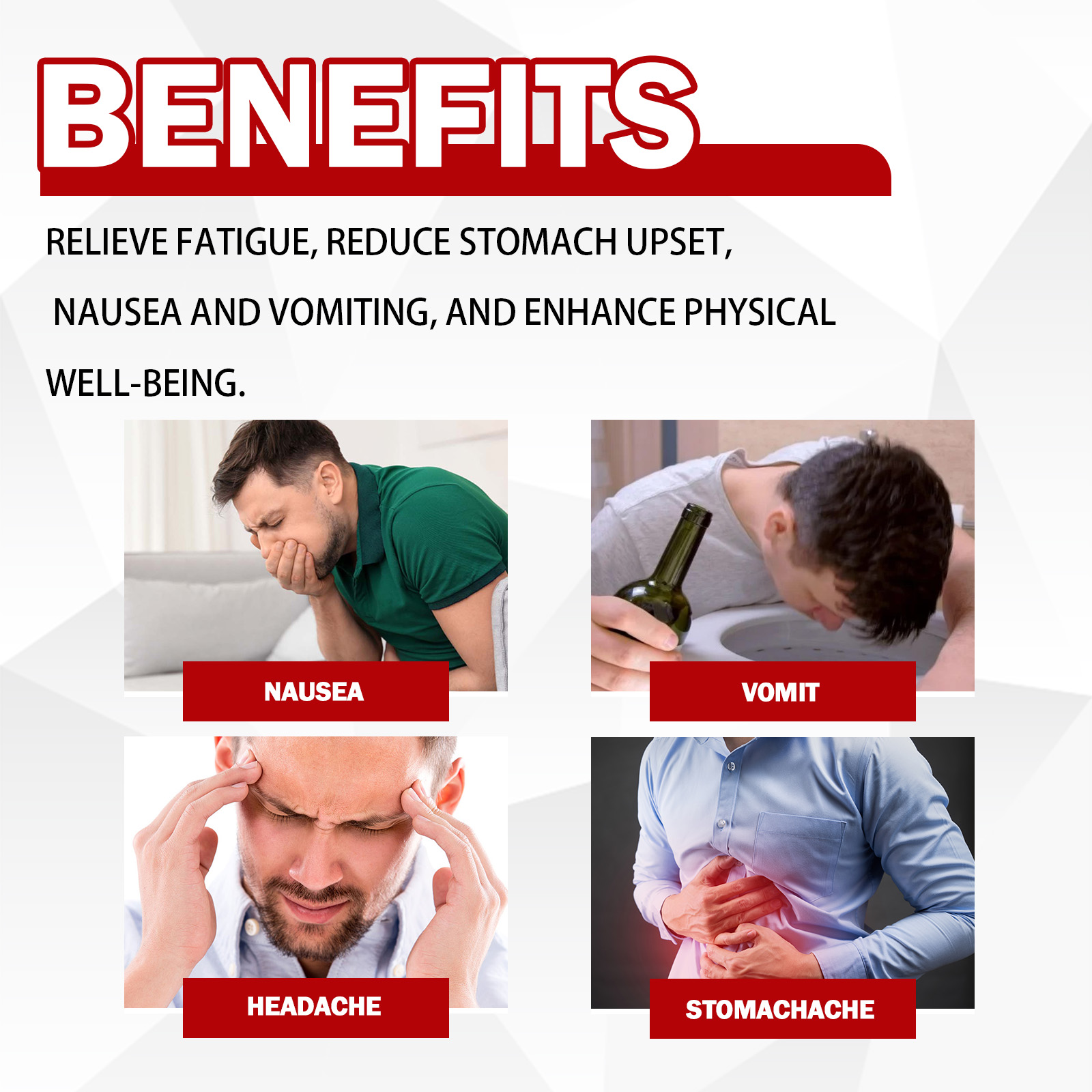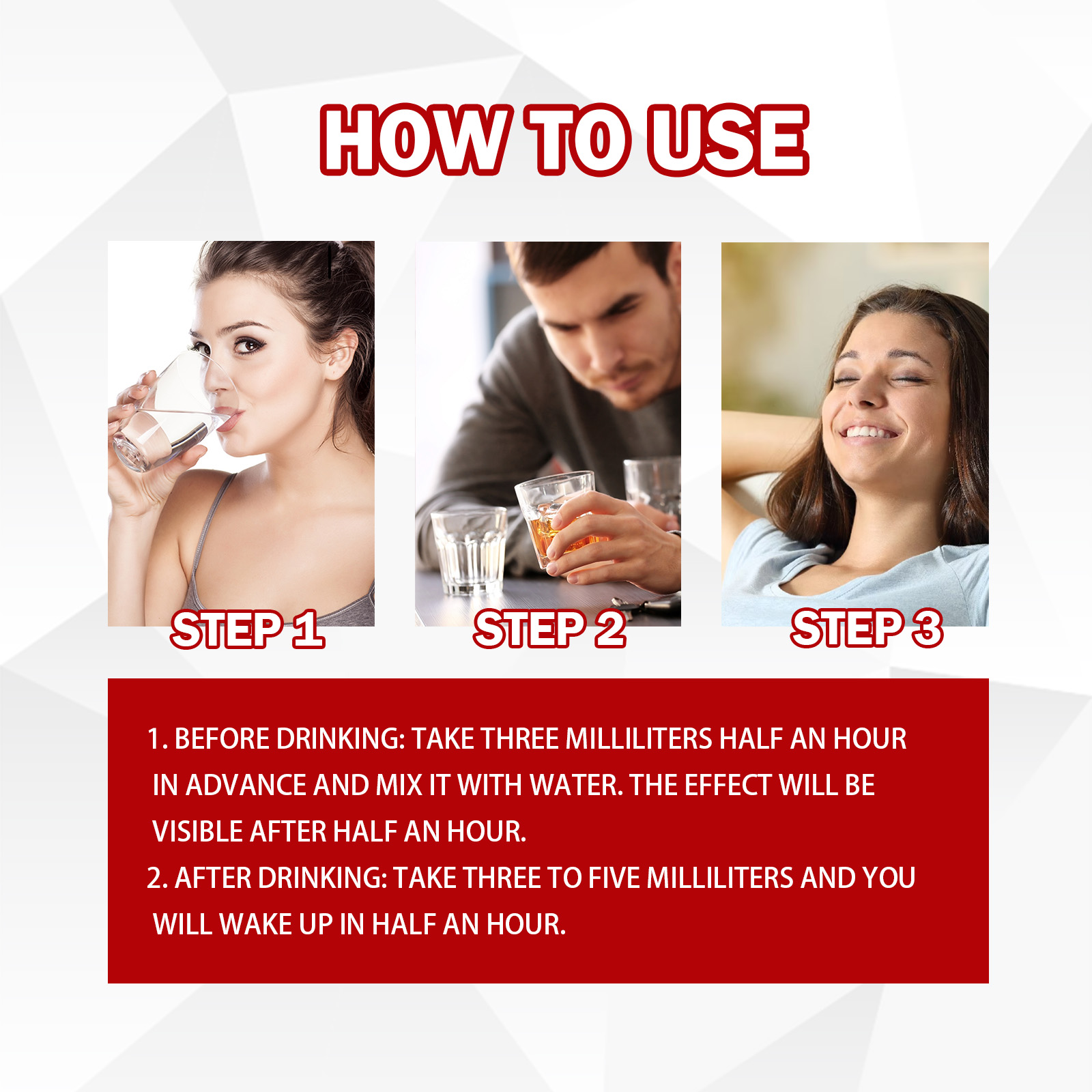 我们的解酒补充胶囊含有明胶、甘油。它可以缓解疲劳,减少胃部不适,恶心和呕吐,增强体质。它的使用方法很简单:1.饮用前:提前半小时服用三毫升,与水混合。效果将在半小时后可见。2.饮用后:服用三至五毫升,半小时内你就会醒来。并且本产品可帮助您在30分钟内摆脱醉酒的困扰。
