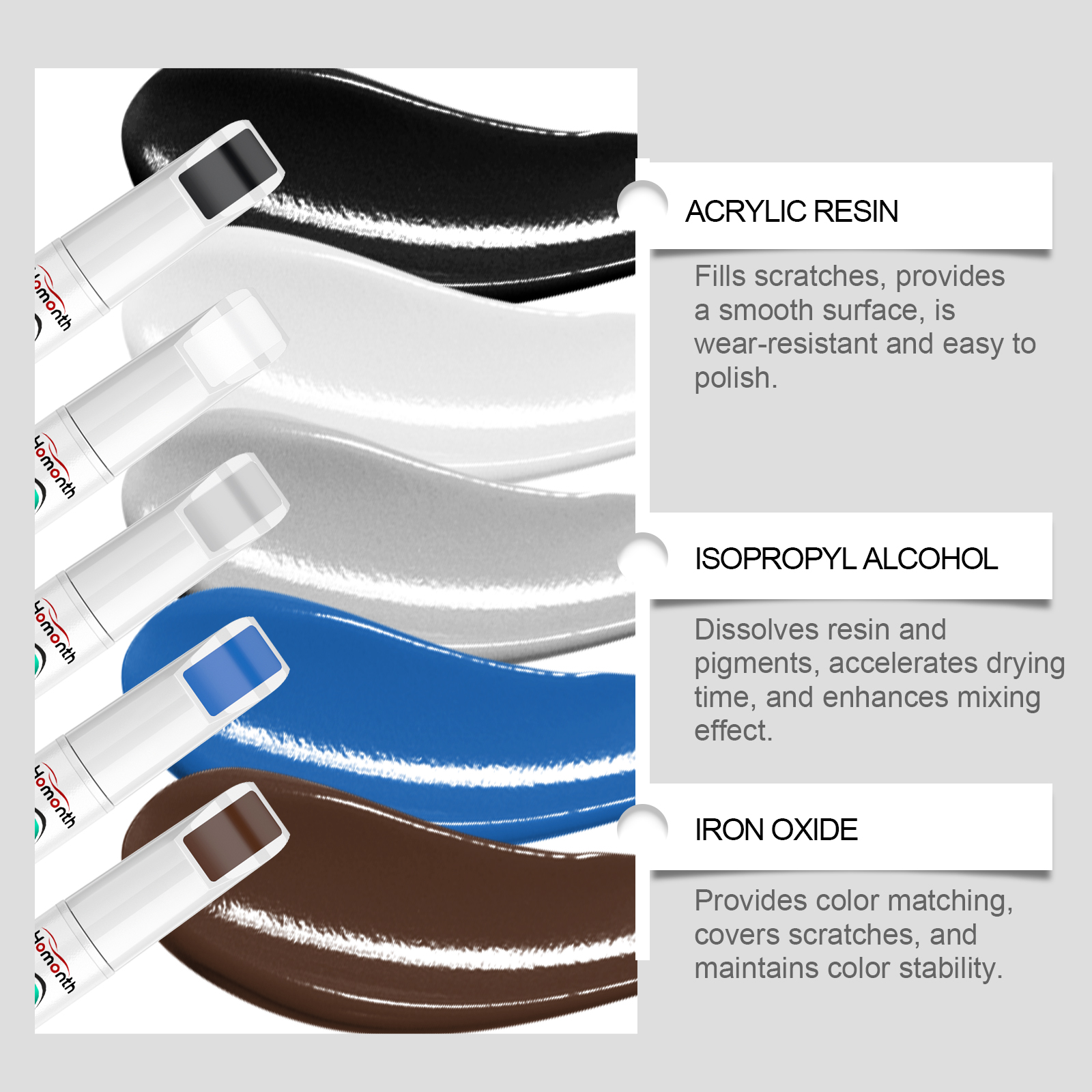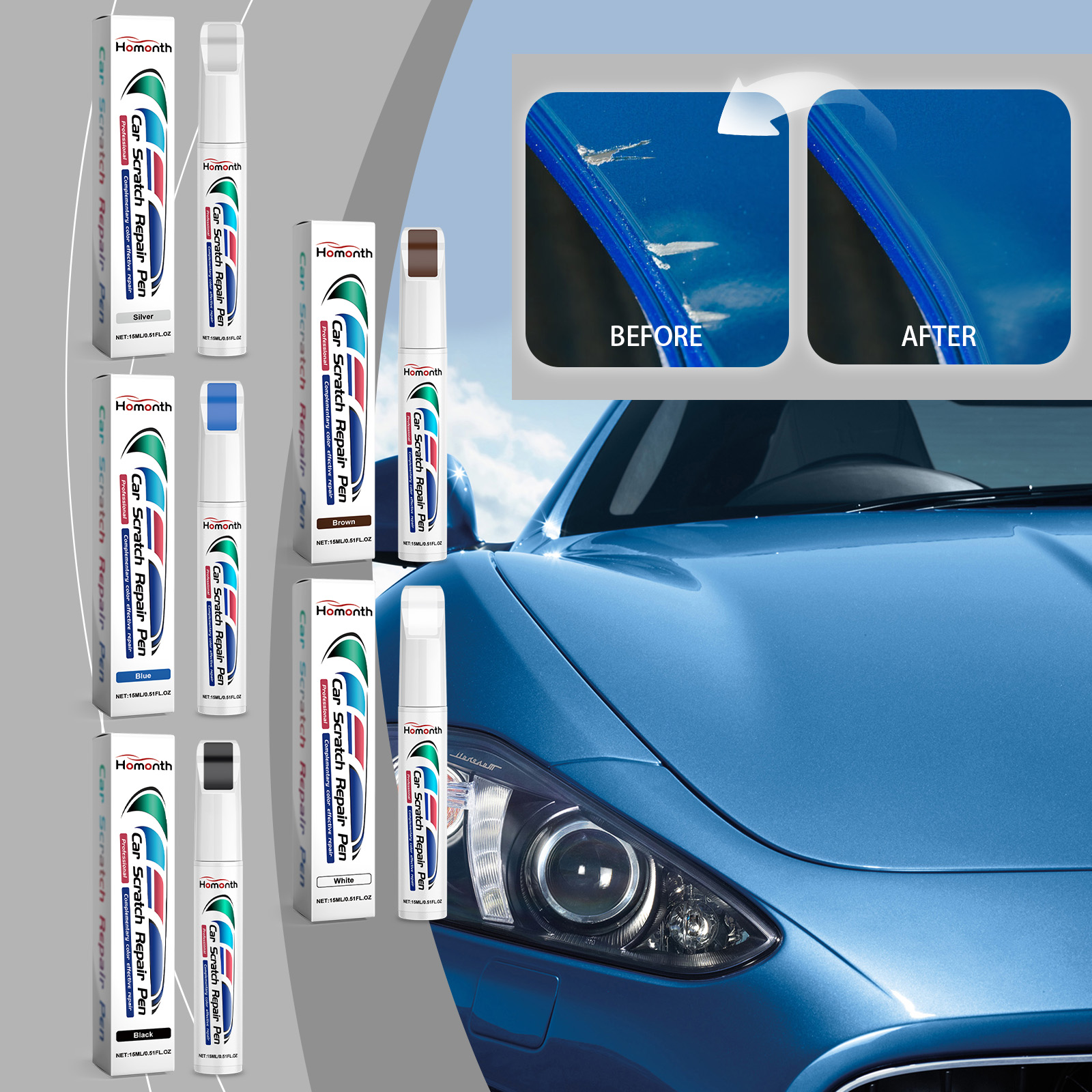 我们的汽车划痕修护笔,由氧化铁、二氧化硅精心调配而成。专为帮助恢复汽车的颜色,让你的车看起来焕然一新设计。使用方法极为便捷:先把车冲洗干净晾干。将本品涂于汽车需要重新喷漆的部位,涂抹后静置1-2小时。并且可以修复汽车表面损伤的能力,让您的爱车看起来更漂亮。