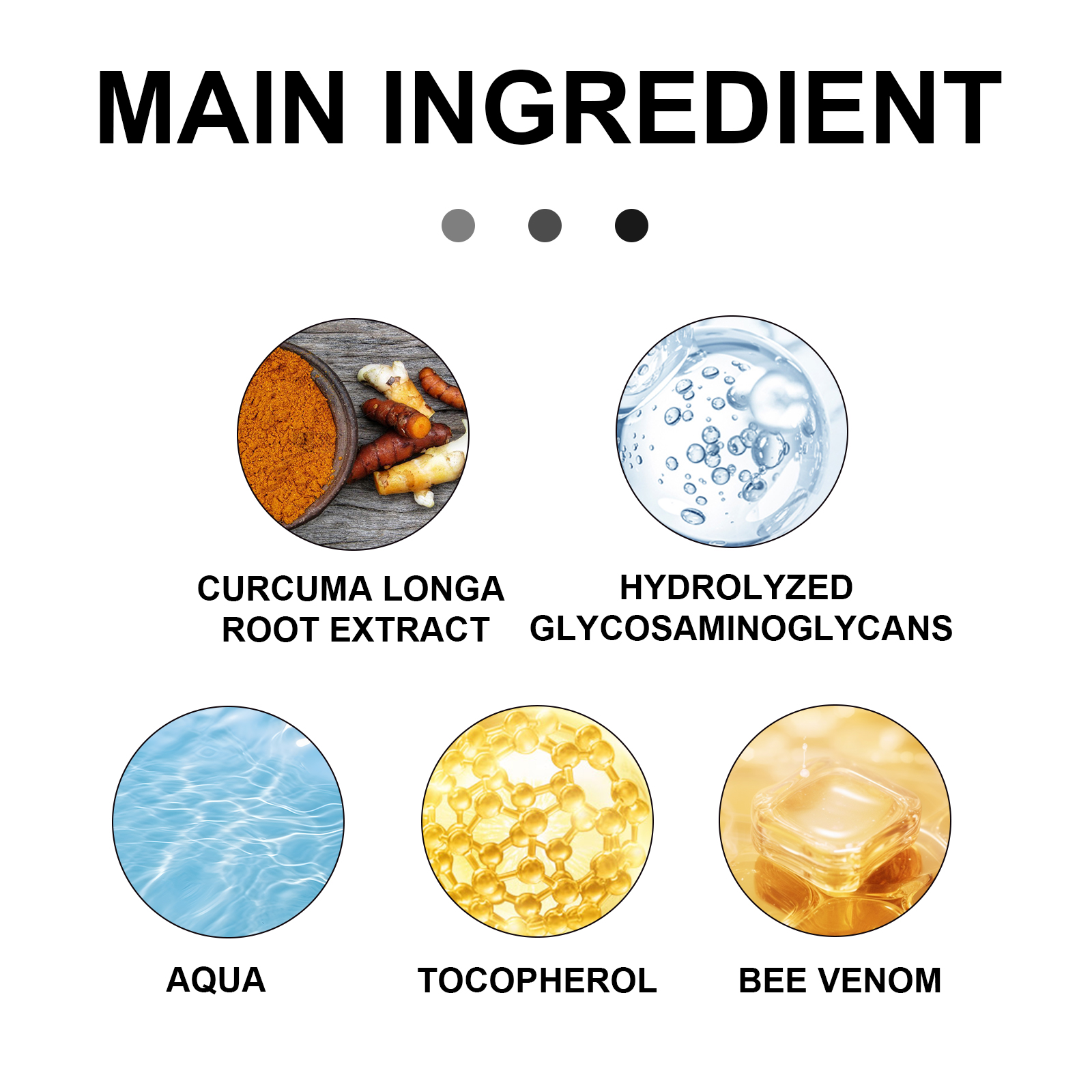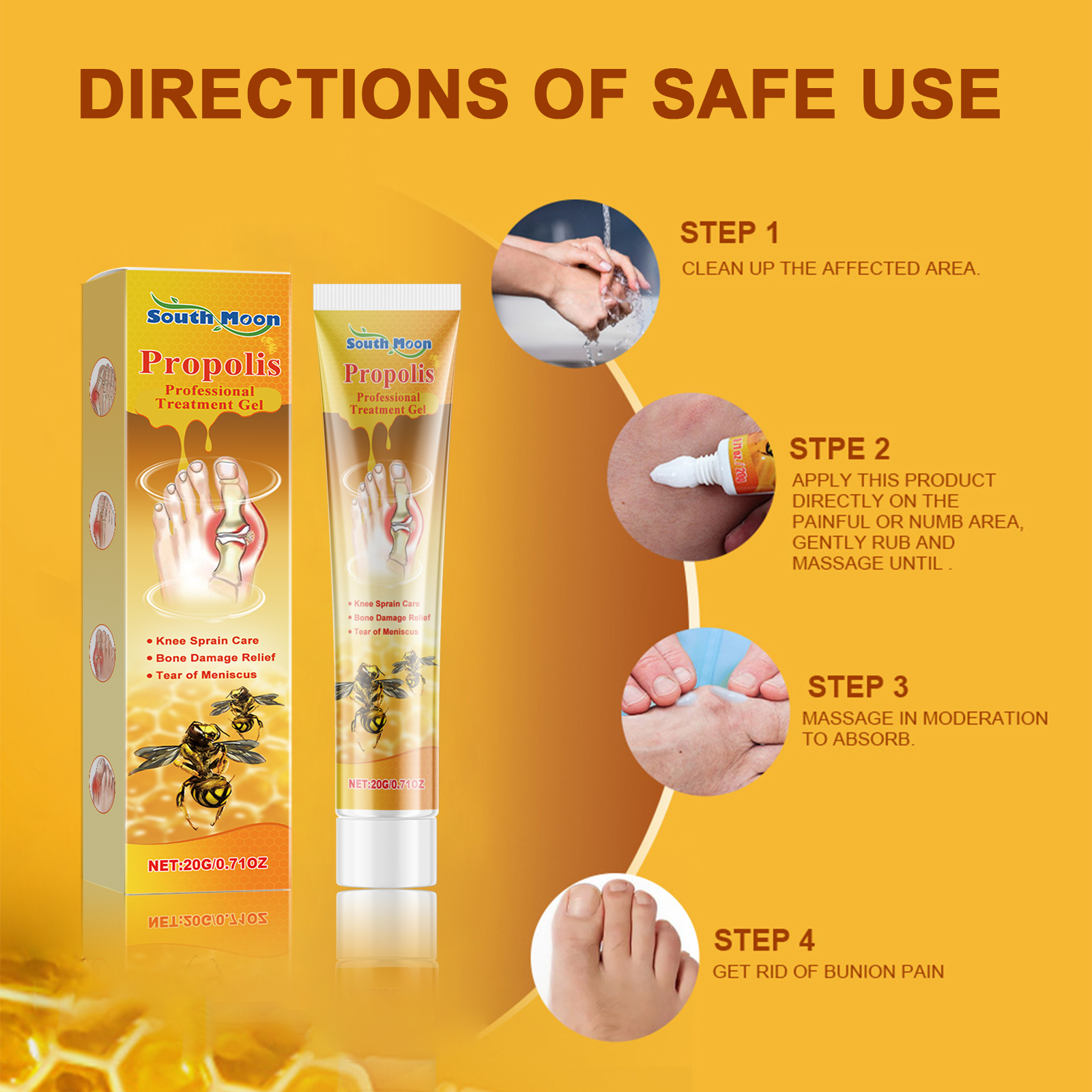 我们的蜂毒关节护理膏含有蜂胶提取物、姜黄根提取物、生育酚。它可以促进血液循环,从而帮助深层镇痛和减少肌肉僵硬。它的使用方法很简单:步骤1,清理受影响区域。步骤二,将本品直接涂于疼痛或麻木部位,轻揉按摩至。步骤3,适量按摩吸收。步骤4,摆脱姆囊炎疼痛。并且使用方便,不需使用特殊工具,即可直接涂抹在疼痛部位。