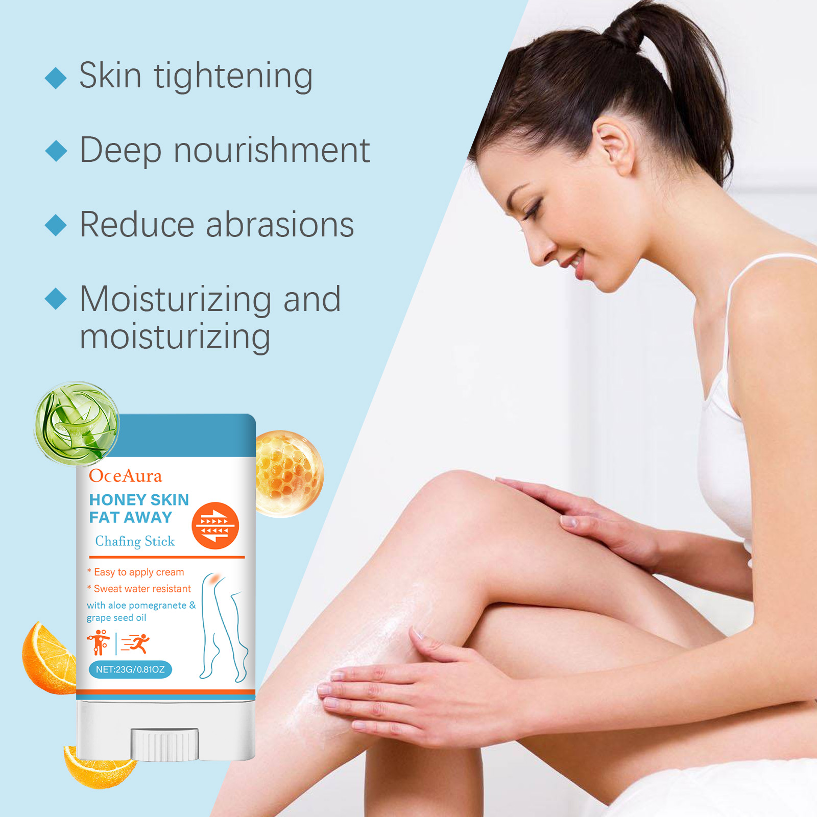我们的纤体抗皱棒含有蜂蜜、库拉索芦荟叶提取物、石榴果提取物。它可以修身抗皱霜有助于改善皮肤紧致度,改善皮肤松弛。成份丰富,深层滋养肌肤,保持肌肤柔软光滑。它的使用方法很简单:1.清洁皮肤,保持干燥;2.取适量本品涂抹于脂肪较多的部位,如大腿内侧、腋窝、小腿等。纤体抗皱棒可以帮助由过多脂肪或运动引起的磨损,使它更舒适。温和无刺激,适合敏感肌肤使用。
