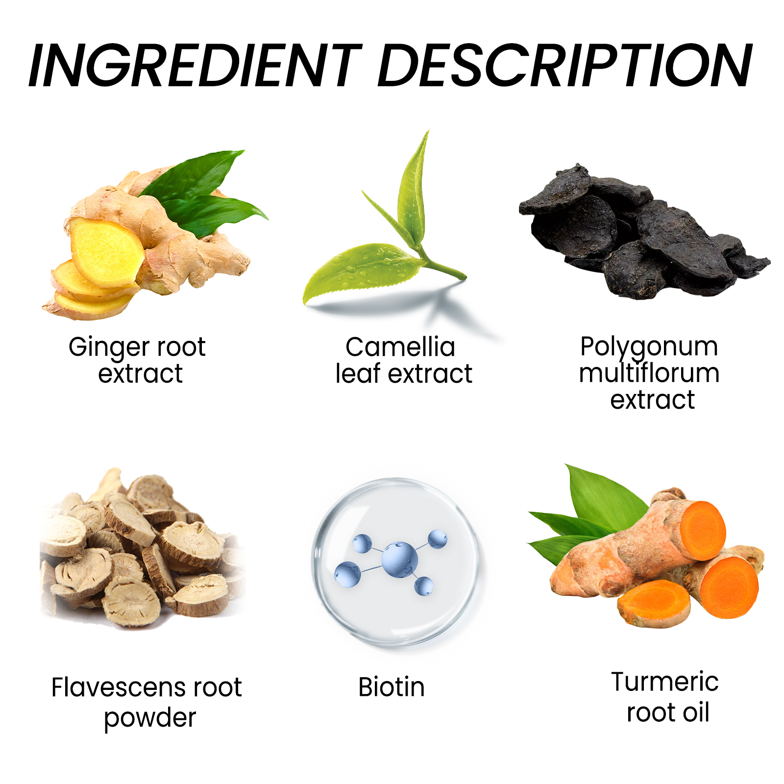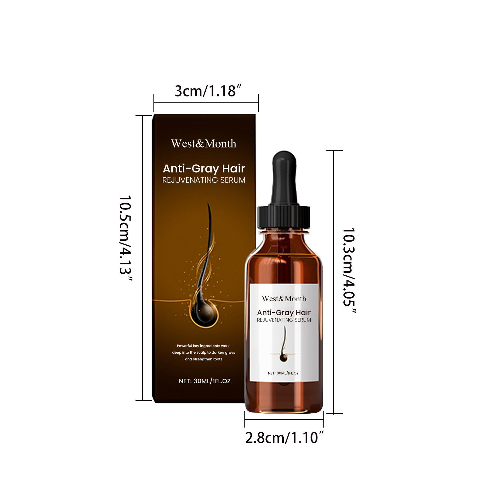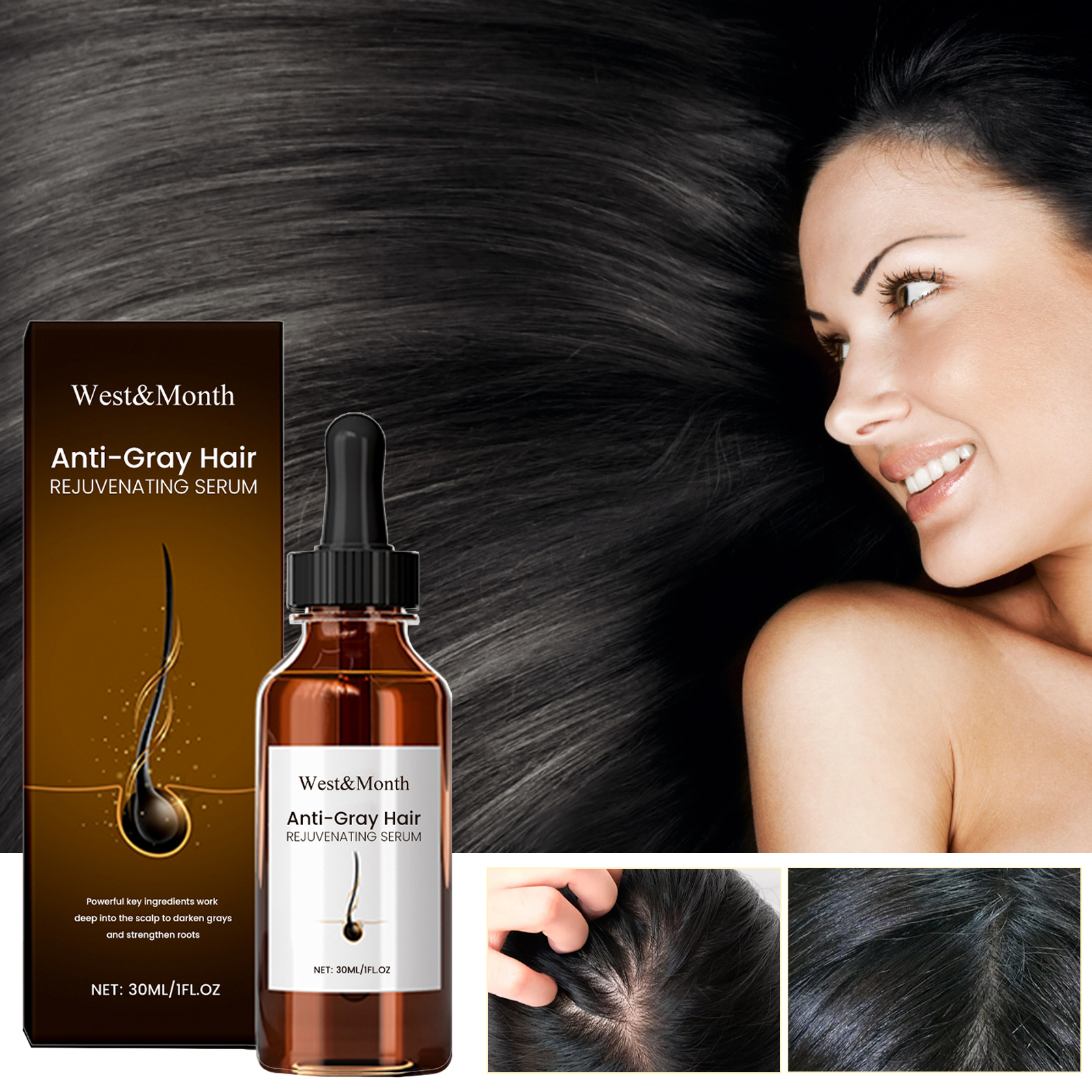 我们的抗白发精华素含有何首乌提取物、生物素、苦参根粉。它可以修复受损毛囊,促进头发生长,有效减少白发密度滋润头发,科学地让头发在4周内变黑。它的使用方法很简单:洗好头发后,在湿发上涂抹1-2滴头发精华液,从发根轻轻按摩到发丝2-3分钟 (每天使用效果最好)。加强头皮健康,减少脱发,强韧发根,使头发更加乌黑浓密有光泽。