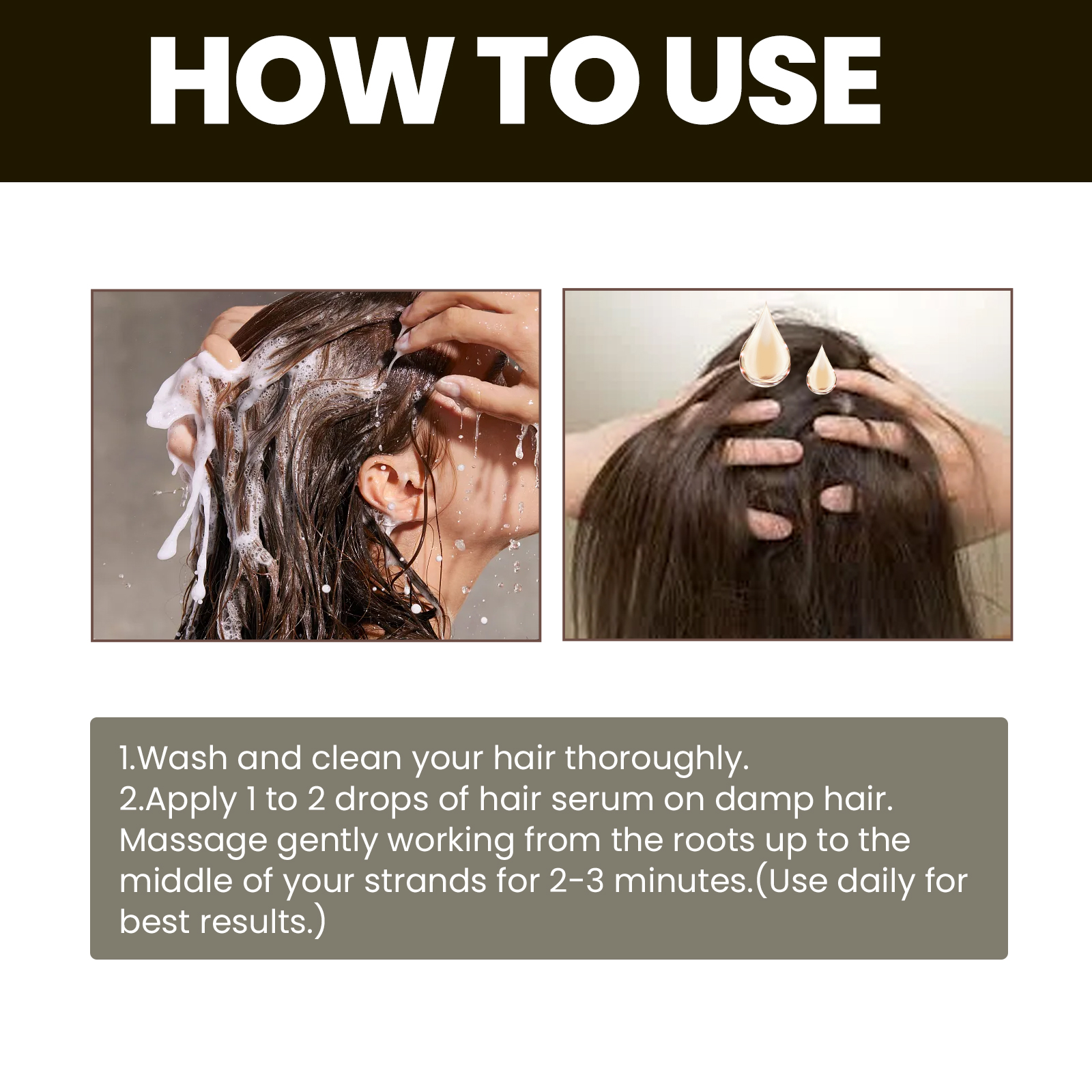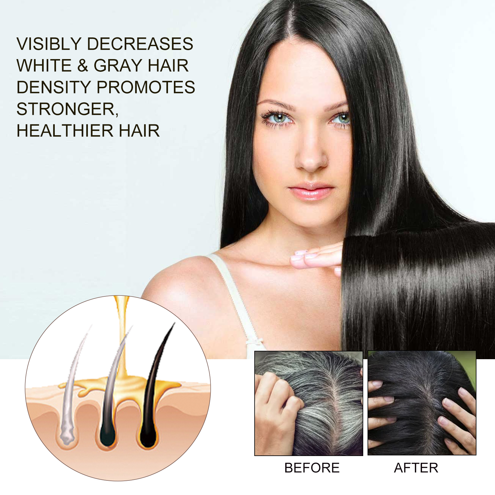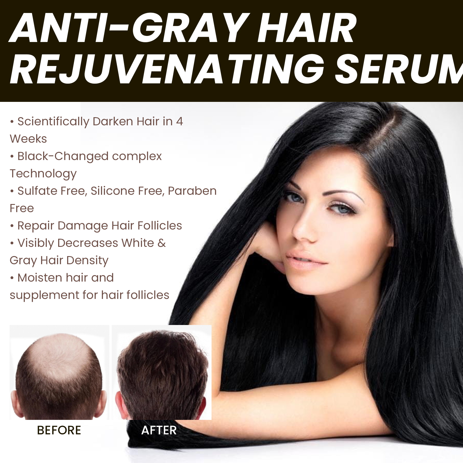 我们的抗白发精华素含有何首乌提取物、生物素、苦参根粉。它可以修复受损毛囊,促进头发生长,有效减少白发密度滋润头发,科学地让头发在4周内变黑。它的使用方法很简单:洗好头发后,在湿发上涂抹1-2滴头发精华液,从发根轻轻按摩到发丝2-3分钟 (每天使用效果最好)。加强头皮健康,减少脱发,强韧发根,使头发更加乌黑浓密有光泽。