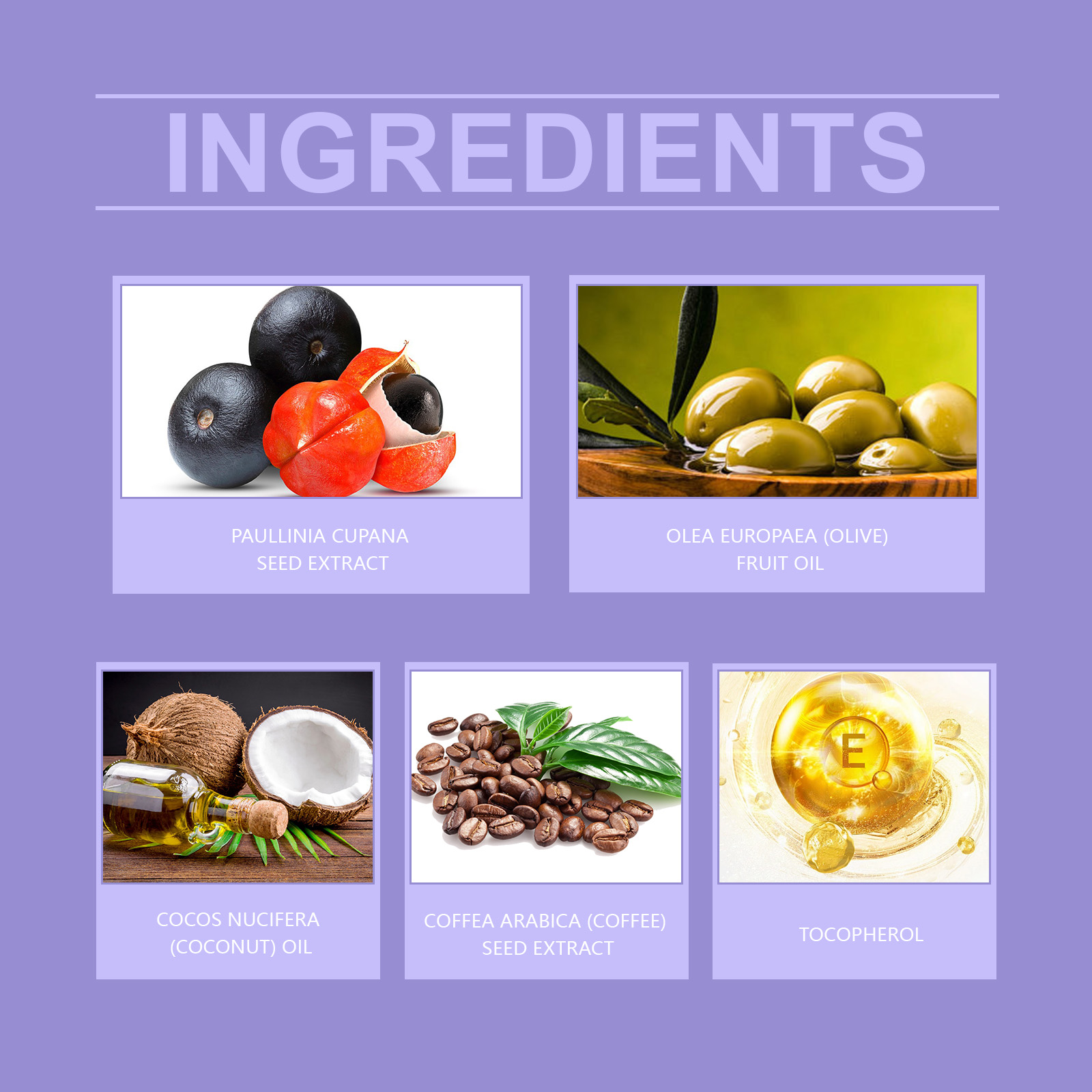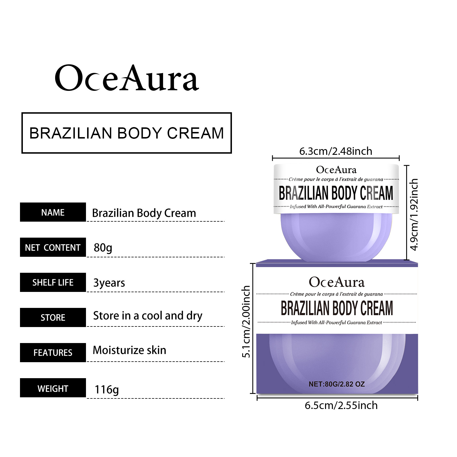 我们的身体润肤霜含有瓜拉纳提取物、椰子油、橄榄果油。它可以紧致肌肤,增强弹性,有效改善肌肤松弛;深层滋养,改善干燥和粗糙,保持肌肤柔软。促进新陈代谢,减少脂肪堆积,帮助塑造结实的臀部线条。它的使用方法很简单:1.清洁身体皮肤,保持干燥;2.取适量本品均匀涂抹于全身;3.轻轻按摩直至完全吸收。专为紧致肌肤和增强曲线而设计。深层保湿,令肌肤光滑有弹性。