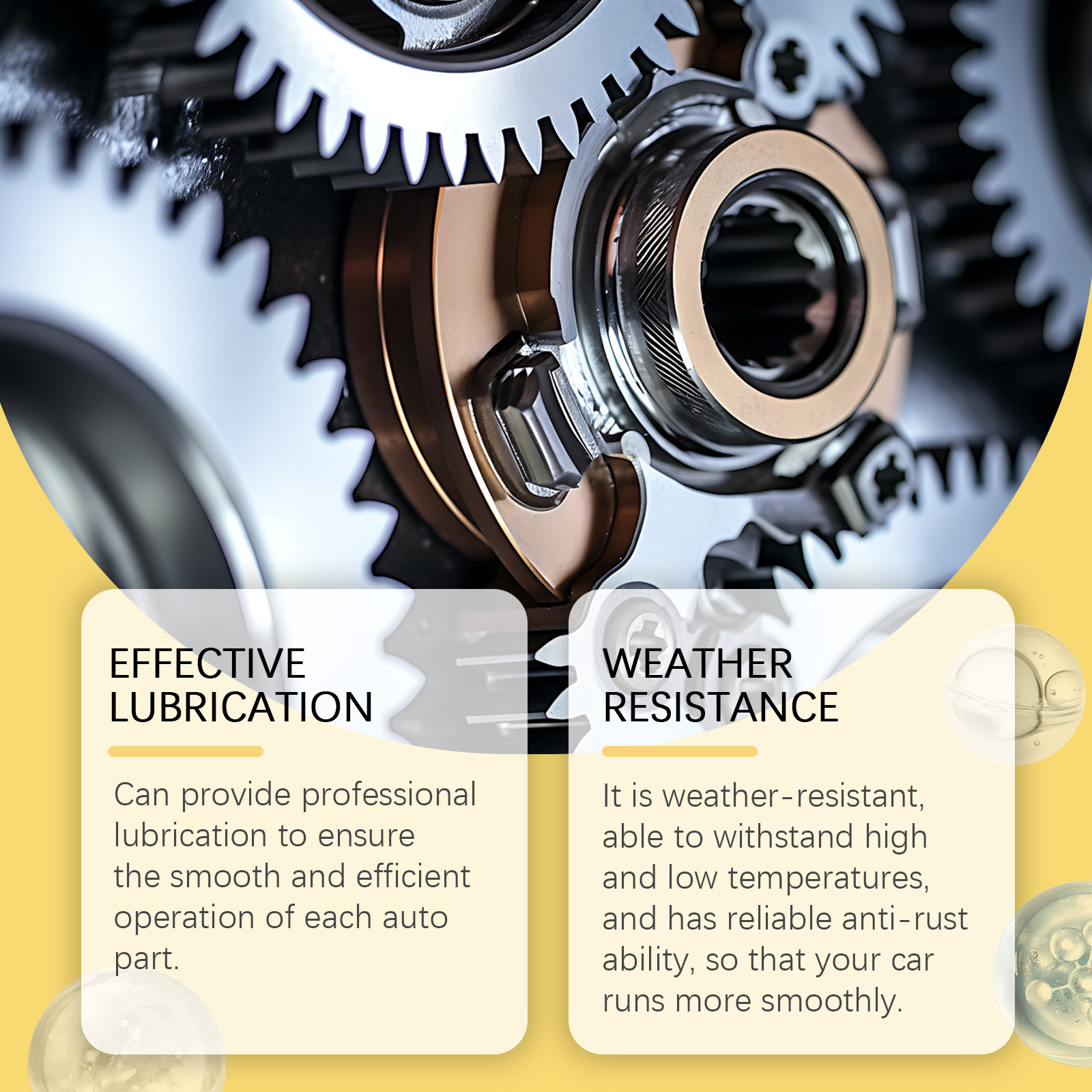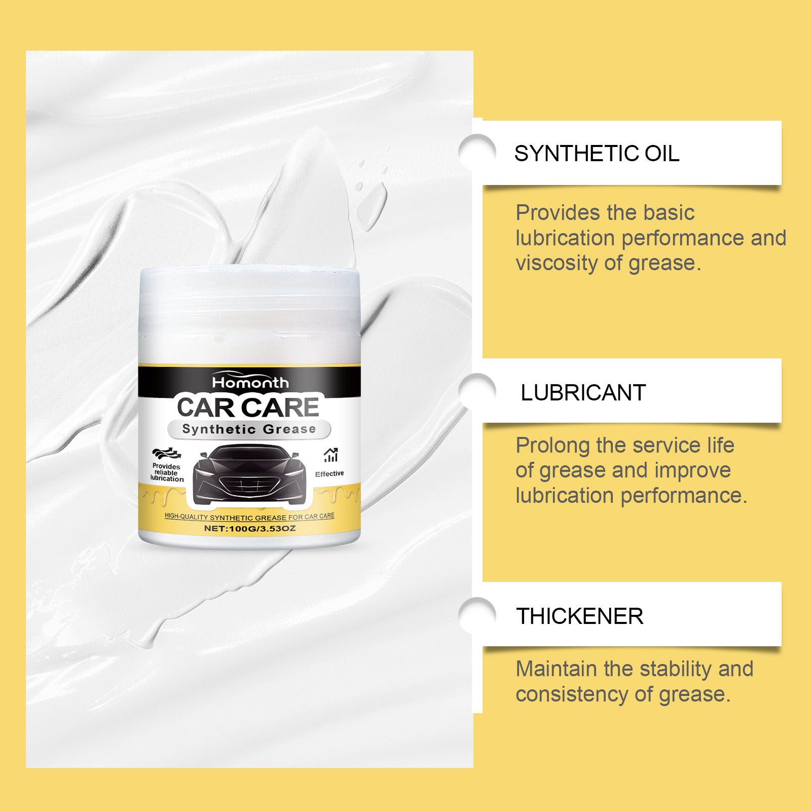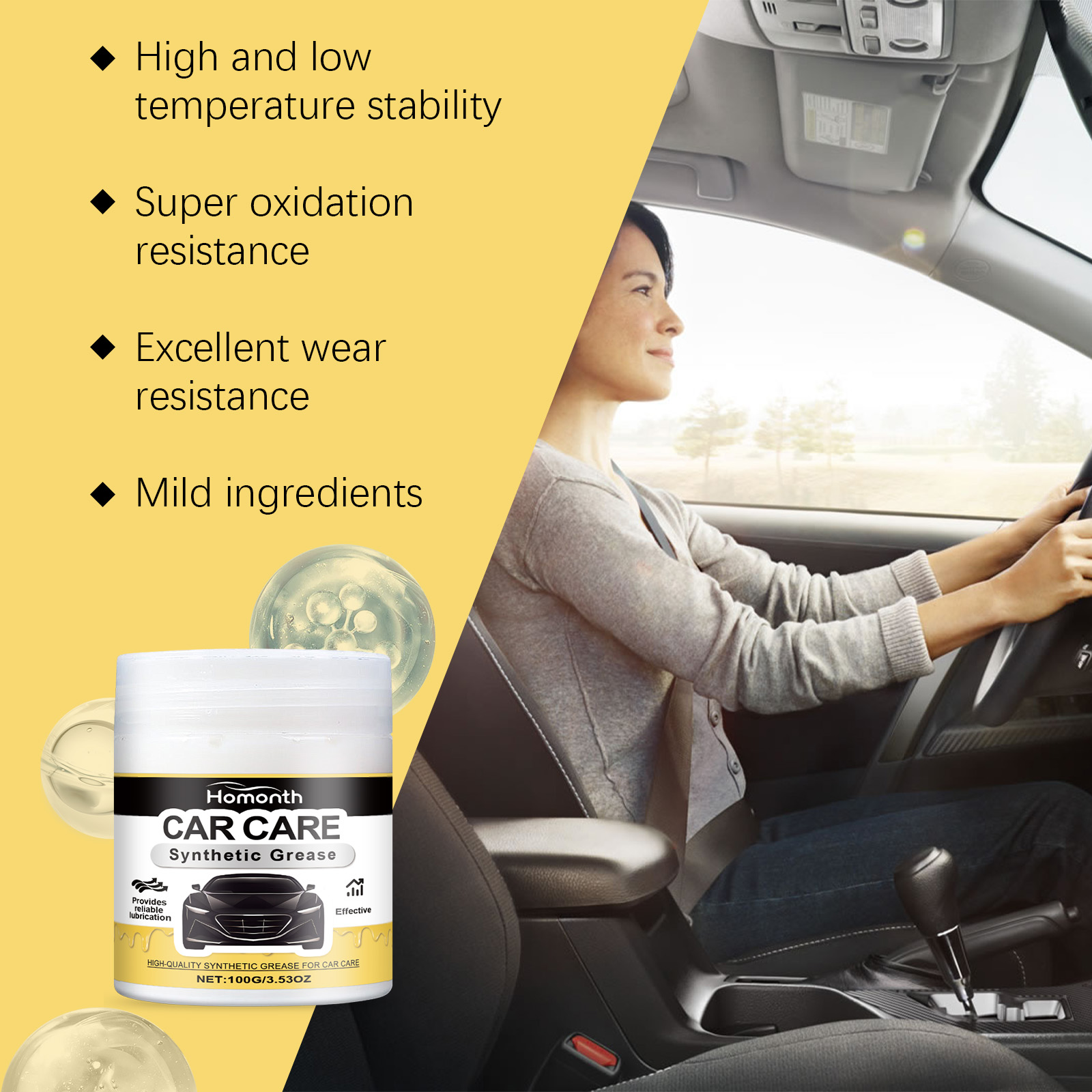 我们的汽车护理润滑脂含有合成油、润滑剂、稠化剂。它可以可提供专业的润滑,保证汽车各部件的平稳高效运行。它是耐风雨的。能够承受高低温,并具有可靠的防锈性,让您的爱车行驶更顺畅。它的使用方法很简单:1.首先清洗汽车机械表面的旧油脂、污垢和沉淀物;2.在汽车底盘、车门表面涂抹适量本品,效果显著。车窗、发动机和汽车其他需要润滑的部件。密封性好,附着力强,可确保其精确停留在所需位置,提供可靠的润滑和保护。