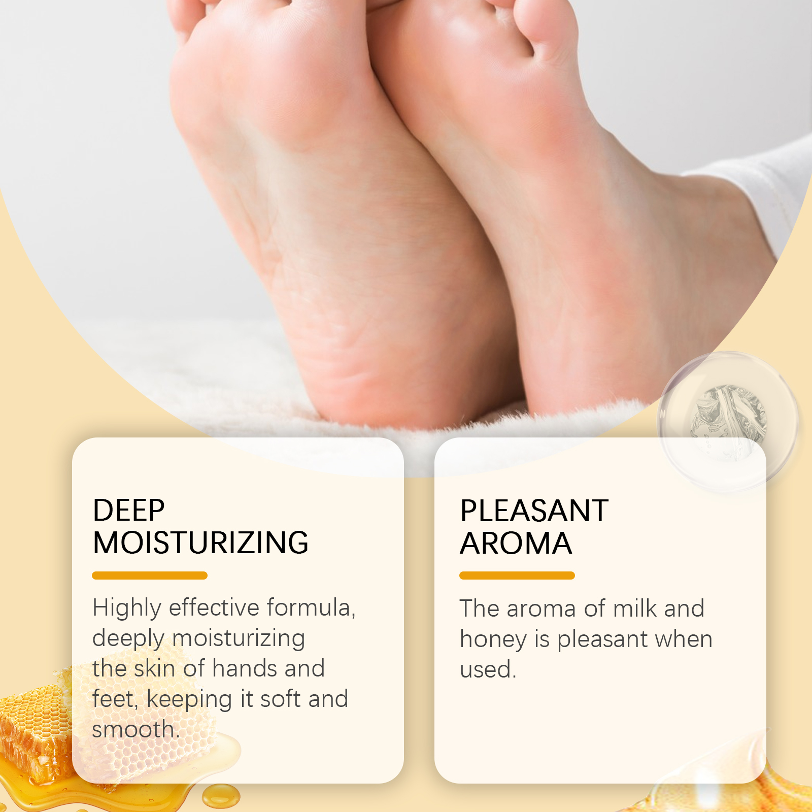 我们的牛奶蜂蜜撕拉手足膜含有牛奶、甘油。它可以持久保湿配方锁住水分,让手部肌肤终日保持水分,带来愉悦的使用体验,放松身心。它的使用方法很简单:完全清洁的手部肌肤,取适量本品,均匀涂抹于手部肌肤。等待25-30分钟,直到精华被吸收后,再将手足膜剥掉。并且可以有效修复干燥、粗糙的肌肤,提高手部肌肤的健康。