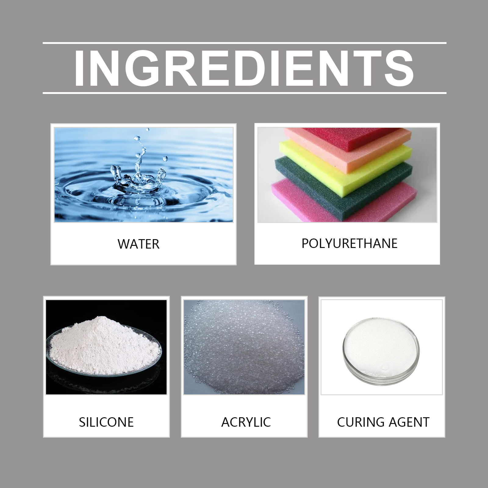 我们的防水密封剂含有聚氨酯、硅橡胶、丙烯酸。它可以快速干燥固化,大大缩短工作时间。防水效果好,能有效防止湿气渗透。它的使用方法很简单:1.保持施工表面干燥,无水渍。2.用毛刷将防水胶均匀涂抹在施工表面,少量多次涂抹。3.通气18-24小时即可治愈。透明质地,不会影响修补或粘接表面的外观,适用于外观美观整洁的场合。