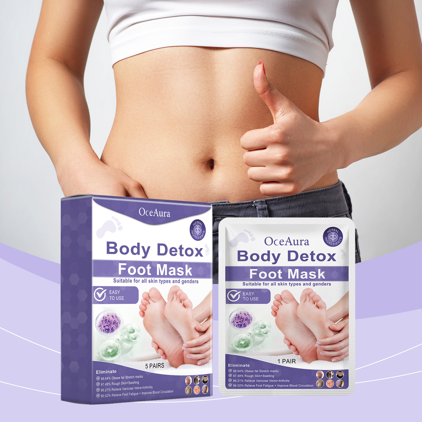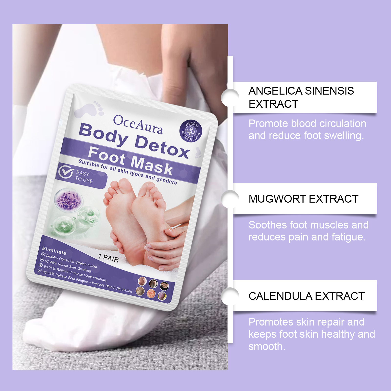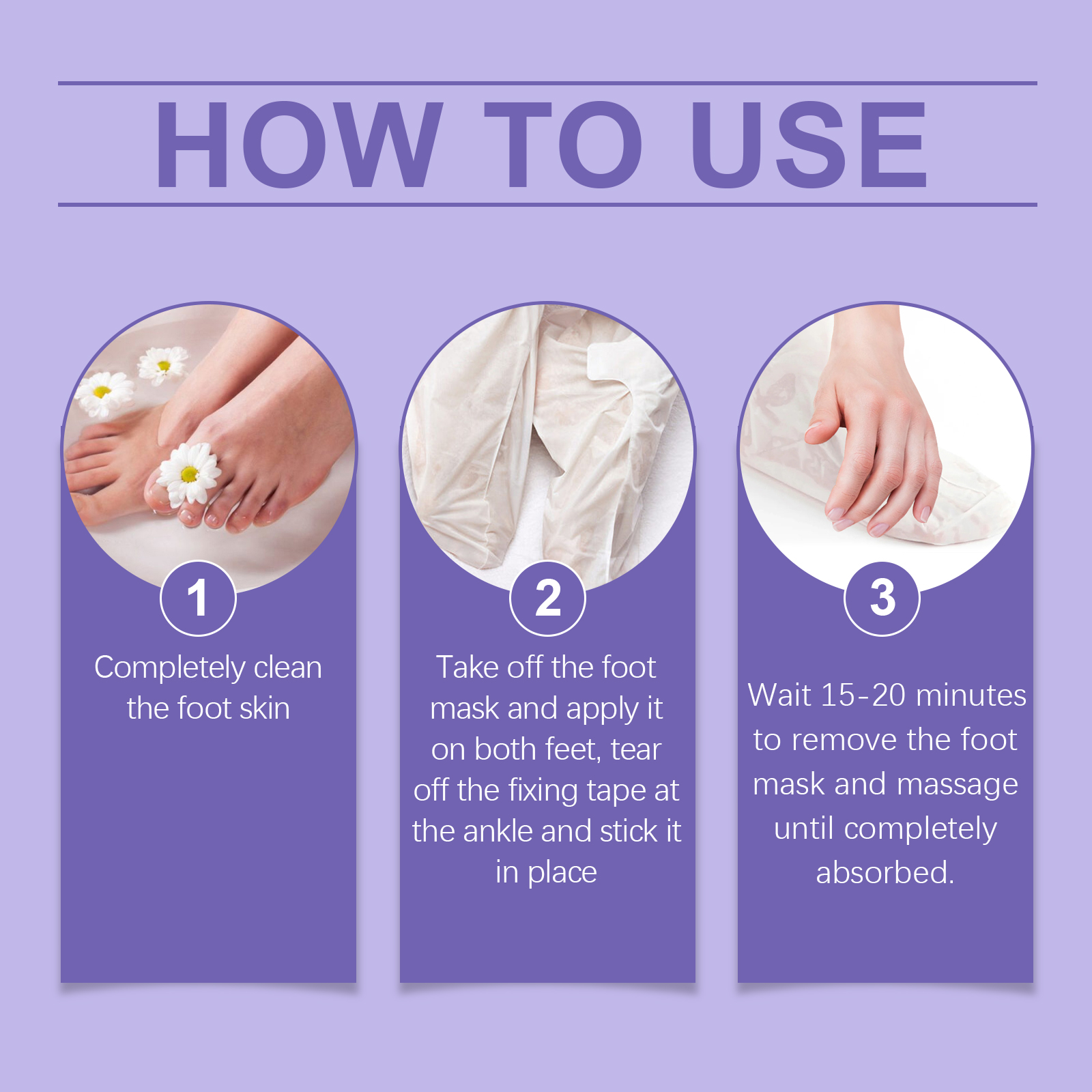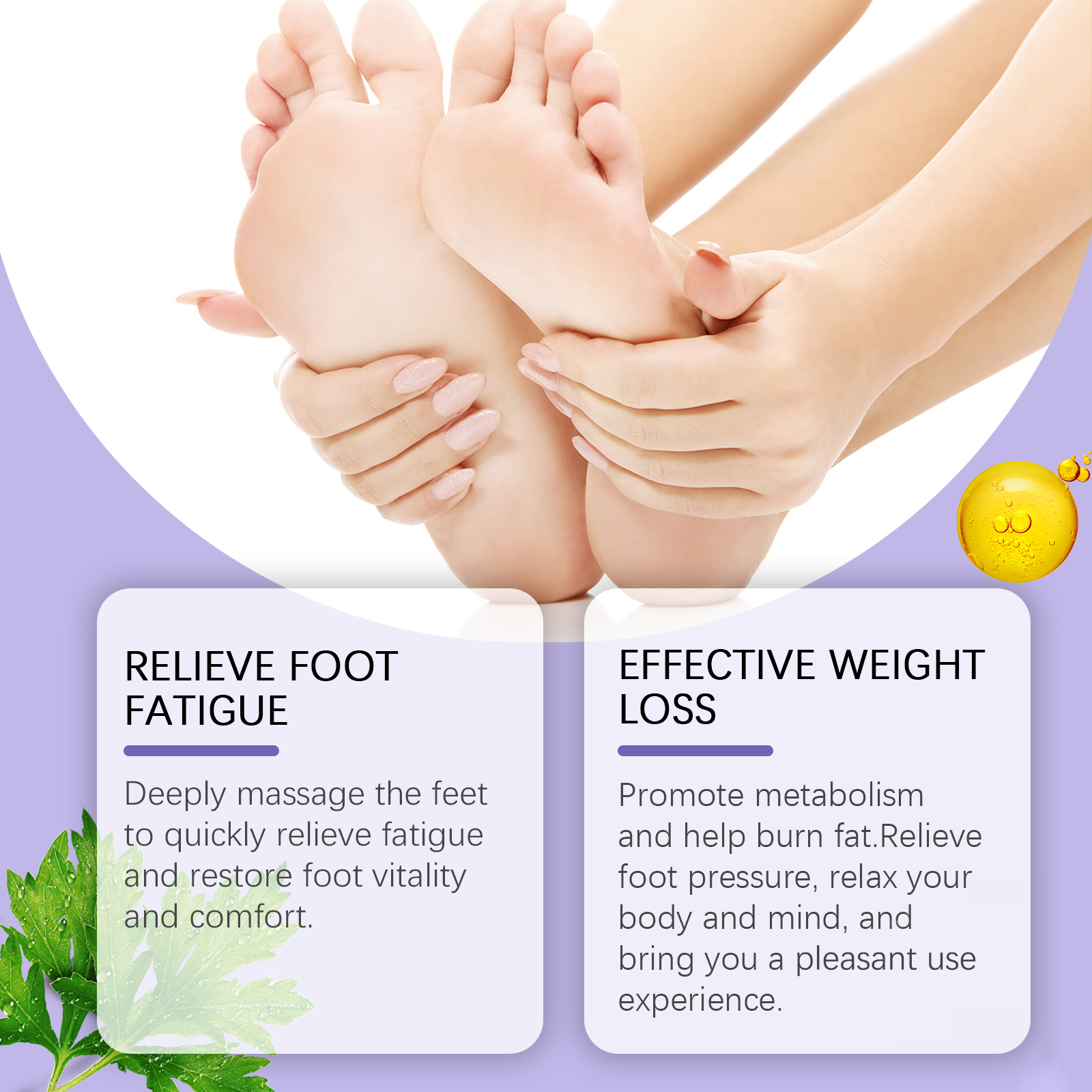 我们的足膜(盒装)含有甘油、羟乙基纤维素。它可以深度按摩足部,快速缓解疲劳,恢复足部活力和舒适感。它的使用方法很简单:1.彻底清洁足部皮肤;2.取下脚膜,敷在双脚上,撕下脚踝处的固定胶带,贴在合适的位置;3.等待15-20分钟,取下脚膜,按摩至完全吸收。促进新陈代谢,帮助燃烧脂肪。缓解足部压力,放松身心,给您带来愉悦的使用体验。